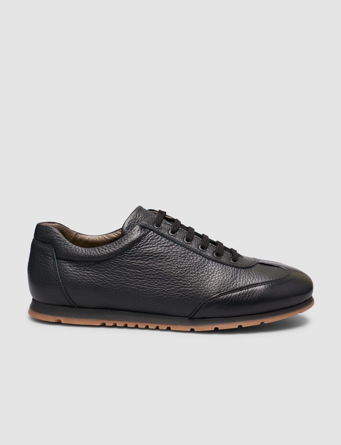 %100 Hakiki Deri Dokulu Siyah Bağcıklı Erkek Günlük Ayakkabı (125952-3387)