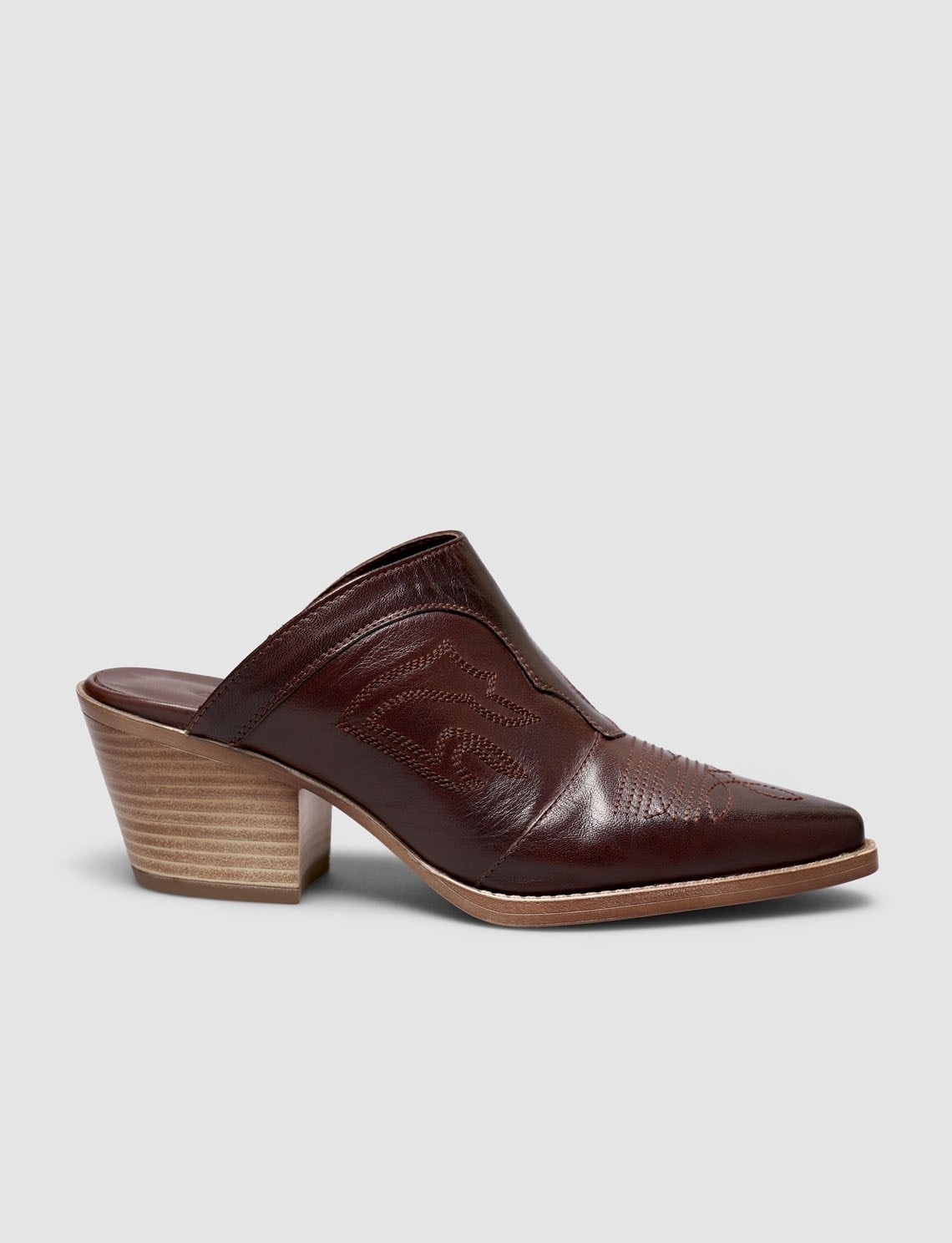 %100 Hakiki Deri Kahve Kadın Kovboy Terlik (127732-87)
