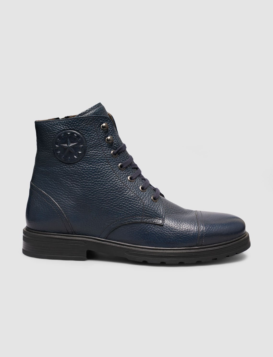Erkek Hakiki Deri Lacivert Bağcıklı Fermuarlı Günlük Bot (119548-3280)