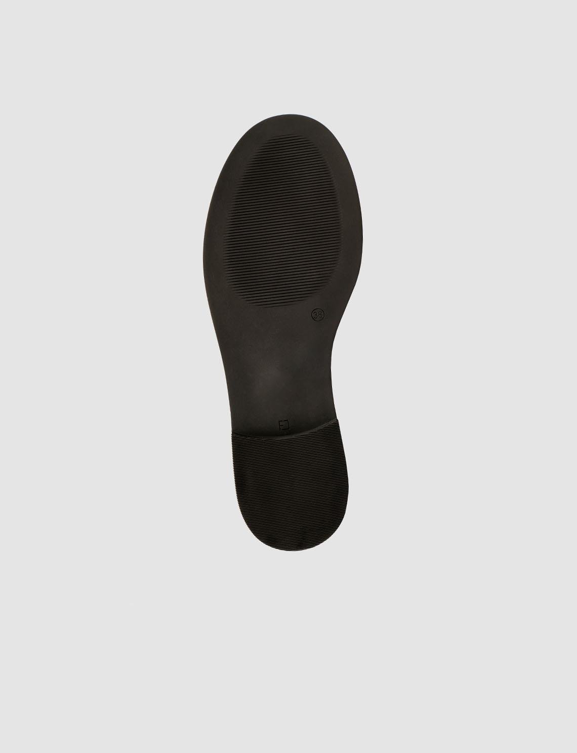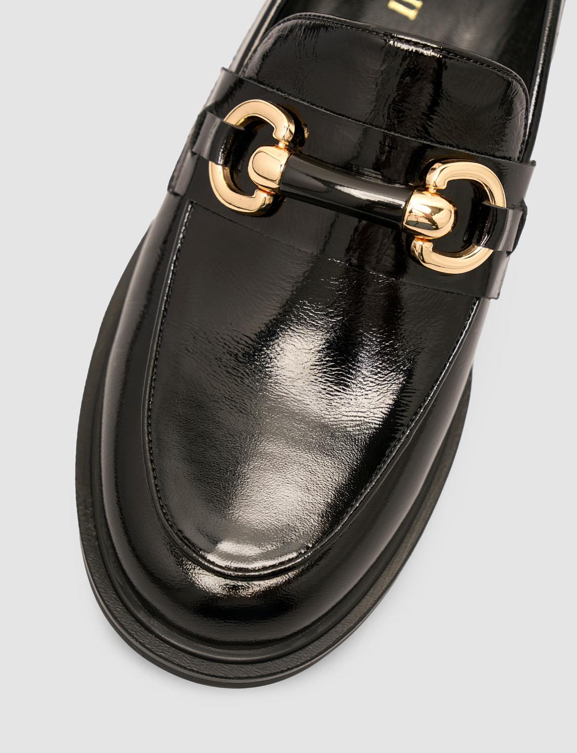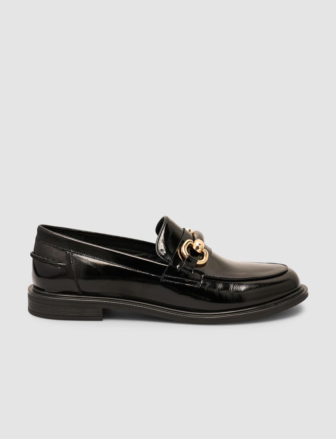 Zarif tokalı detayı ve parlak rugan görünümüyle öne çıkan bu siyah kadın loafer ayakkabı, kış sezonunda şıklığı modern bir yorumla sunar. Hakiki dana derisi dış yüzeyi, pürüzsüz dokusu ve göz alıcı parlaklığıyla hem klasik hem de şehir stiline uyum sağlar.
