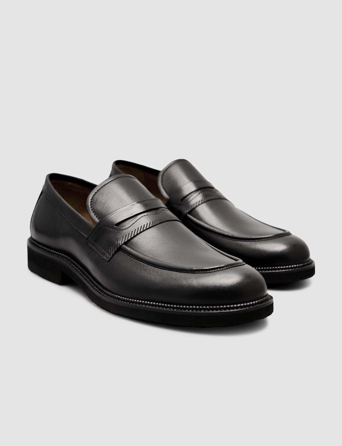 %100 Hakiki Deri Siyah Erkek Klasik Loafer Ayakkabı (129659-213)