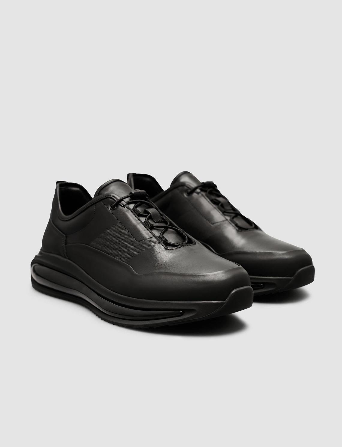 Modern ve dinamik tasarımıyla öne çıkan bu siyah erkek spor ayakkabı, günlük kullanımda konforu ön planda tutanlar için tasarlanmıştır. Hakiki dana derisi dış yüzeyi, dayanıklı yapısı ve sade görünümüyle şehir stiline kolayca uyum sağlar.