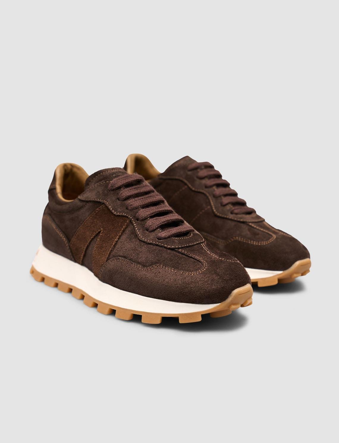 Doğal tonları ve sportif görünümüyle öne çıkan bu kahverengi erkek sneaker, kış sezonunda konforlu ve stil sahibi bir kullanım sunar. Hakiki dana derisi süet dış yüzeyi, yumuşak dokusu ve dayanıklı yapısıyla günlük kombinlere kolayca uyum sağlar.
