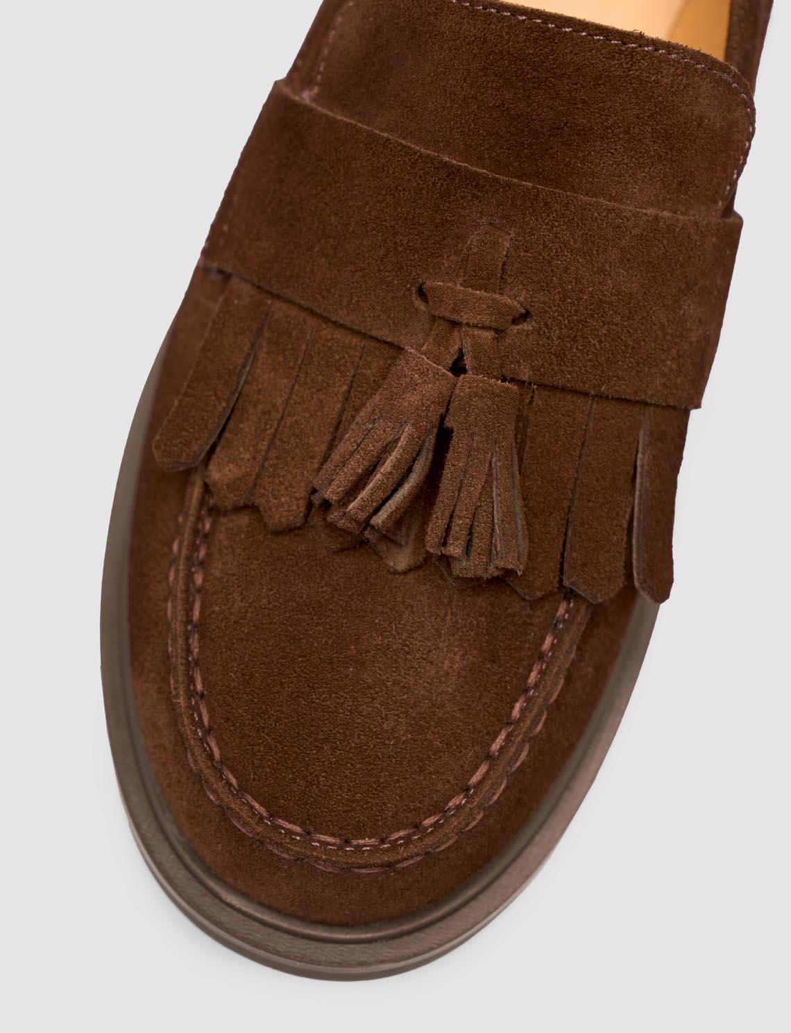 Zarif püskül detayı ve doğal süet dokusuyla öne çıkan bu kahverengi loafer erkek ayakkabı, kış sezonunda klasik şıklığı modern bir yorumla sunar. Hakiki dana derisi süet dış yüzeyi, yumuşak dokusu ve sıcak rengiyle hem günlük hem de şık kombinlere kolayca uyum sağlar.