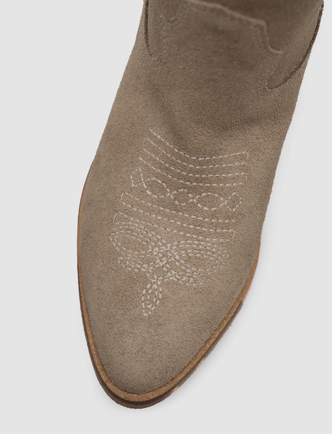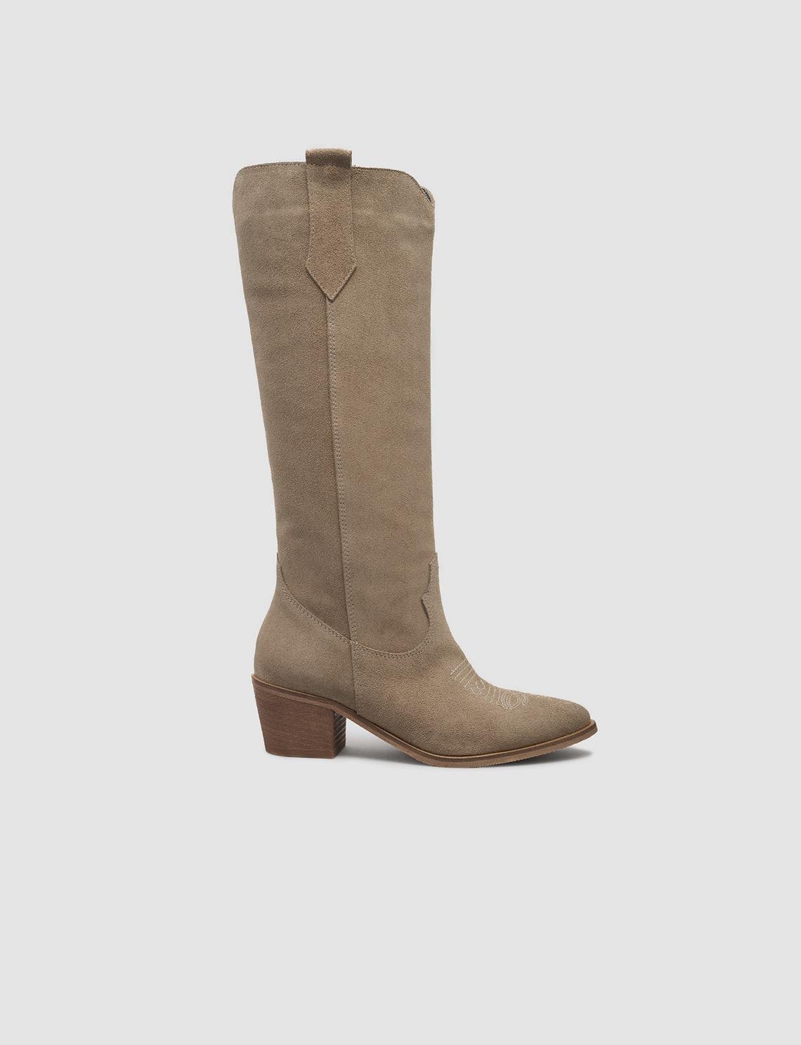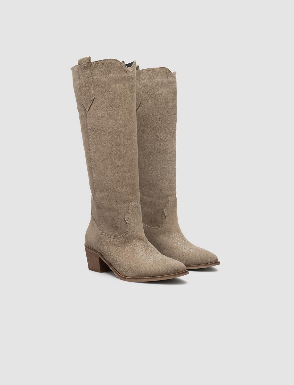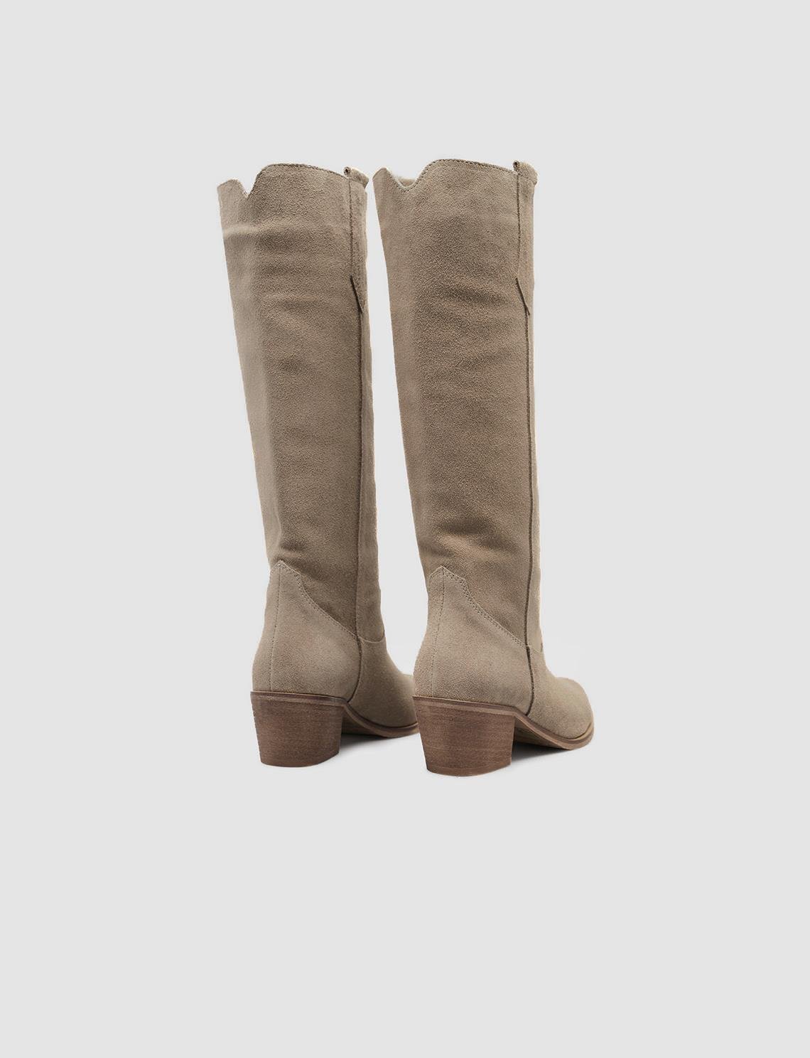 Zarif formu ve uzun siluetiyle öne çıkan bu açık vizon süet çizme, kış sezonunda şıklığı konforla birleştirmek isteyenler için tasarlanmıştır. Hakiki dana derisi süet yüzeyi, modele doğal ve sofistike bir görünüm kazandırırken feminen kombinlerle uyum sağlar.