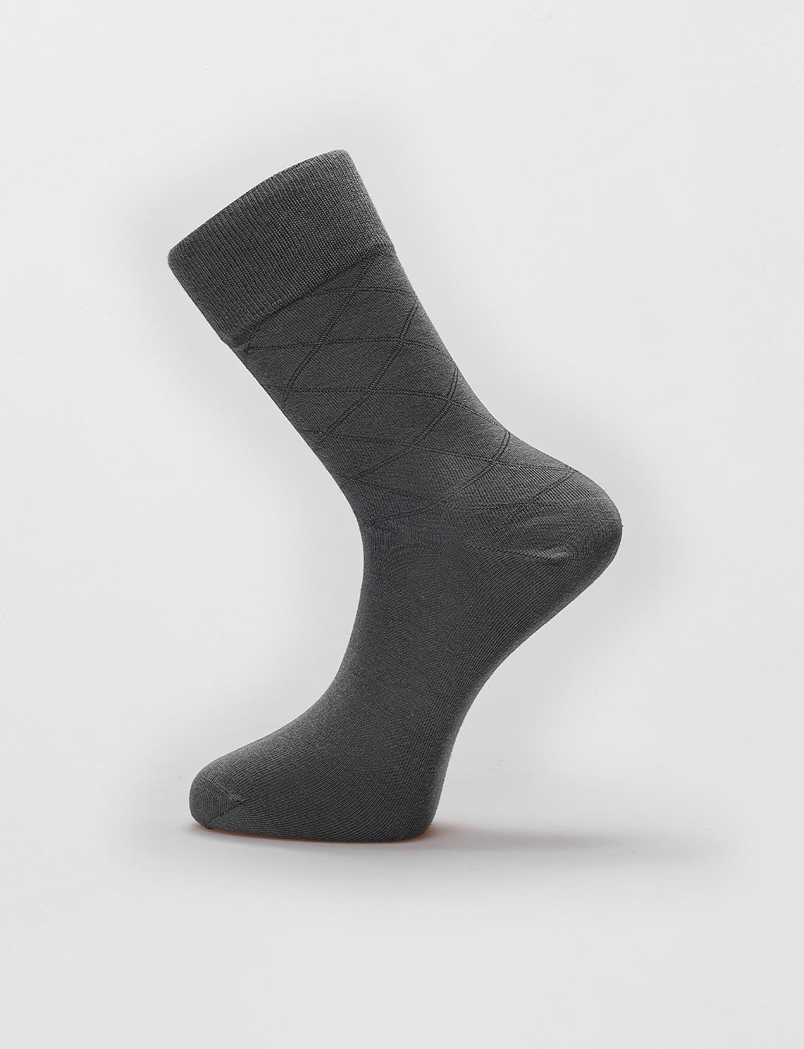 6'lı Baklava Desen Gri Erkek Çorap (123464-10264)