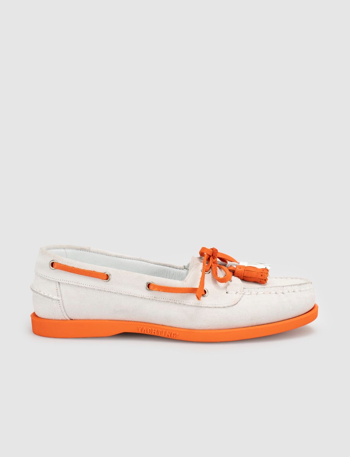 Beyaz-Turuncu Detaylı Hakiki Deri Marin Loafer Ayakkabı (131141-15243)