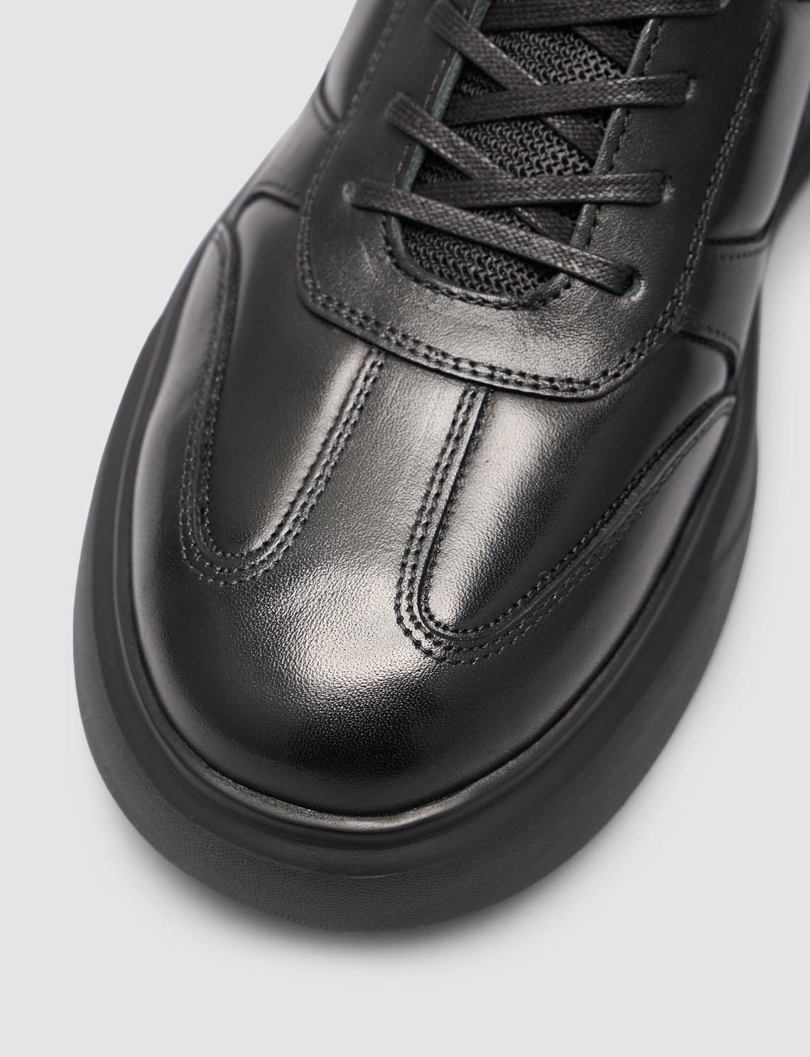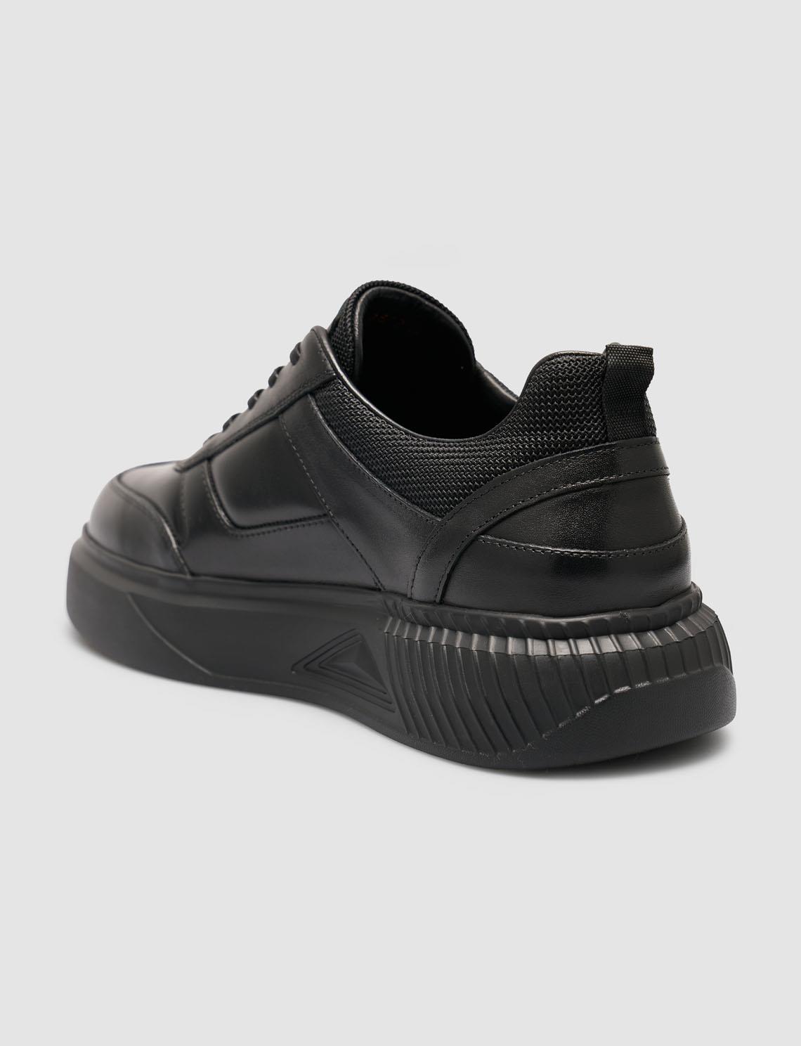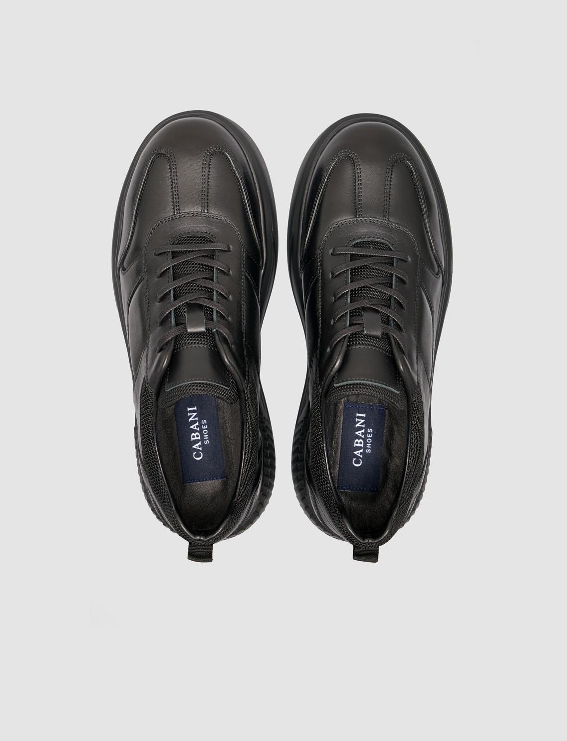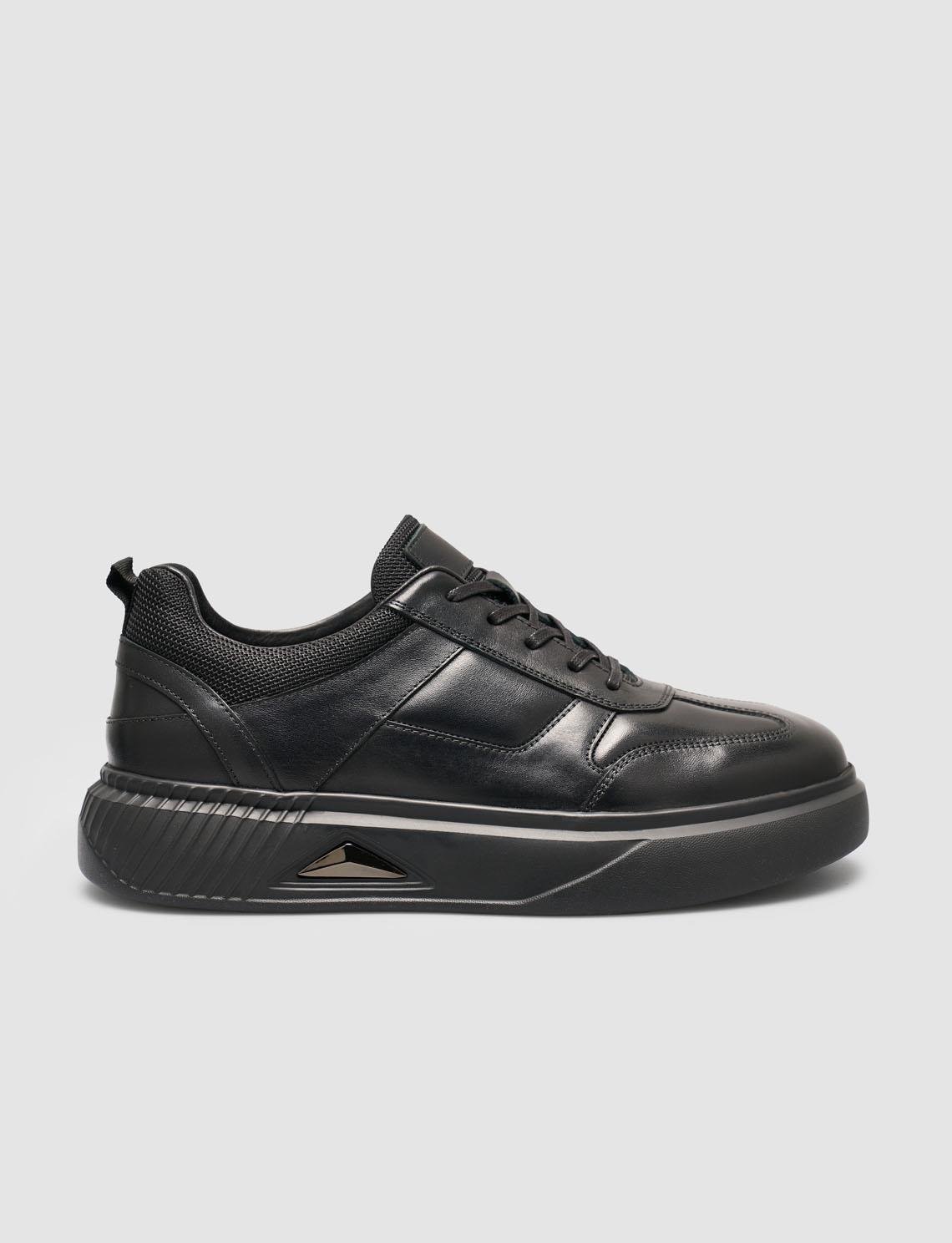 Hakiki dana deriden üretilen bu siyah spor ayakkabı, mevsimlik kullanım için hem konfor hem de dayanıklılık sunar. Normal kalıba sahip model, nefes alabilen hakiki deri iç astarı sayesinde gün boyu kuru ve rahat bir kullanım sağlar. Kaymaz, hafif ve esnek EVA + kauçuk tabanı ile güvenli adımlar sunarken 4.5 cm taban yüksekliği modern bir görünüm kazandırır. Bağcıklı yapısı ile ayağa tam uyum sağlayan ayakkabı, soft yürüyüş özelliği ile günlük şehir yaşamında maksimum rahatlık sunar.
