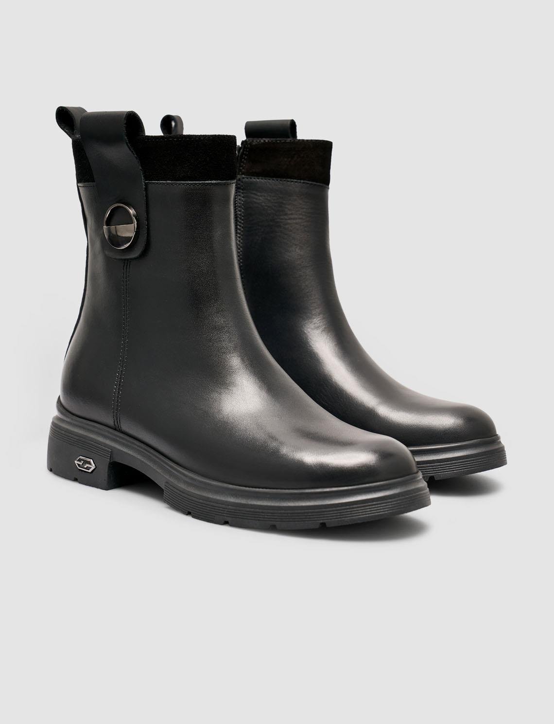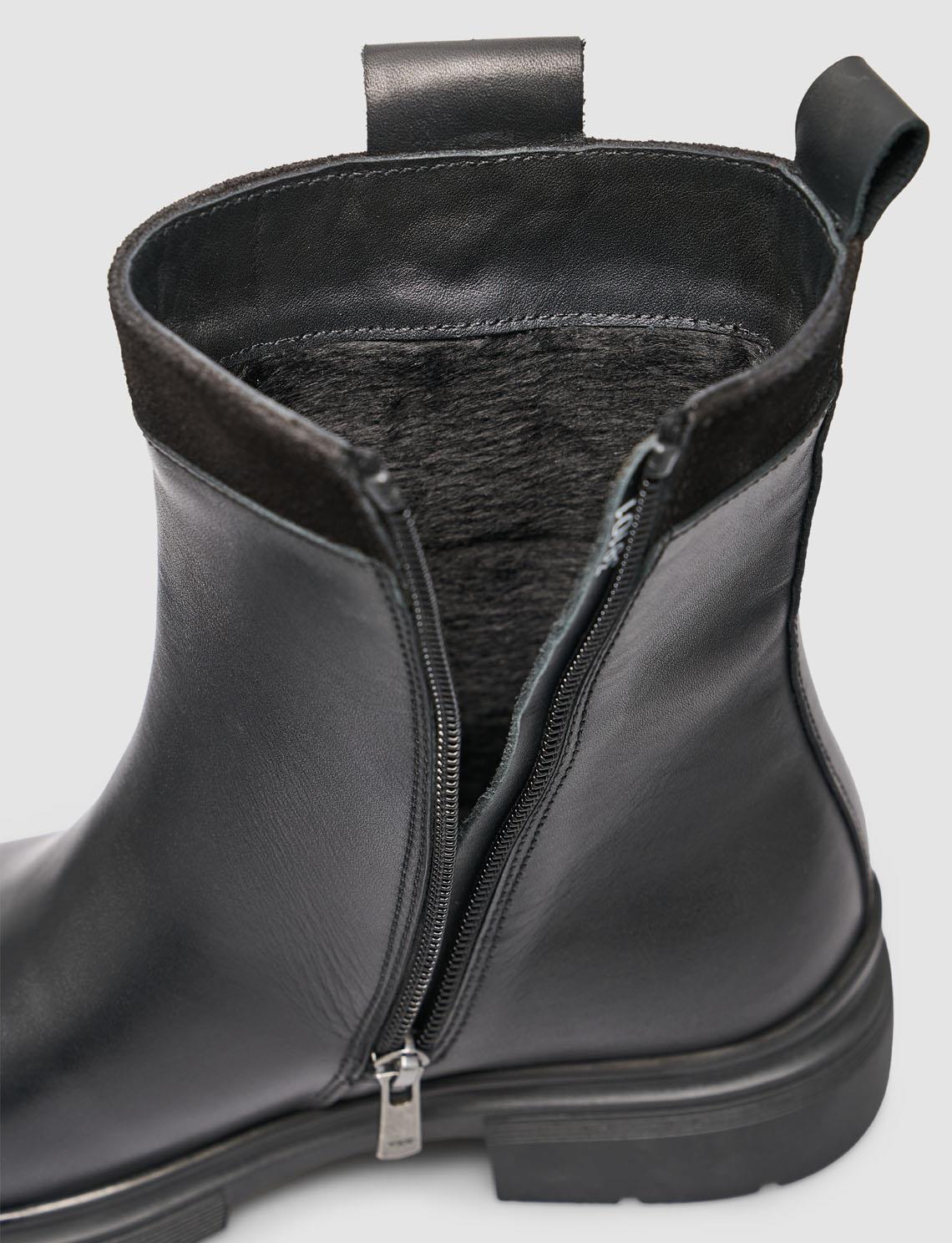 Hakiki dana derisinden üretilen bu siyah kışlık bot, konfor ve dayanıklılığı bir araya getiren modern bir tasarıma sahiptir. Normal kalıplı yapısı ayağa doğal uyum sağlarken, sıcak astarlı iç tekstil kaplaması ısı yalıtımı sayesinde ayakları soğuk havalarda sıcak tutar. Hafif, esnek ve kaymaz Light Termo tabanı güvenli ve rahat adımlar sunar. 3,5 cm taban yüksekliği günlük kullanım için ideal bir denge sağlar. Fermuarlı bağlama şekli sayesinde pratik bir kullanım sunan model, soft yürüyüş özelliği ile uzun süreli kullanımda ekstra rahatlık sağlar. Türkiye’de üretilen bu şık bot, kış sezonu için hem estetik hem de fonksiyonel bir tercih oluşturur.