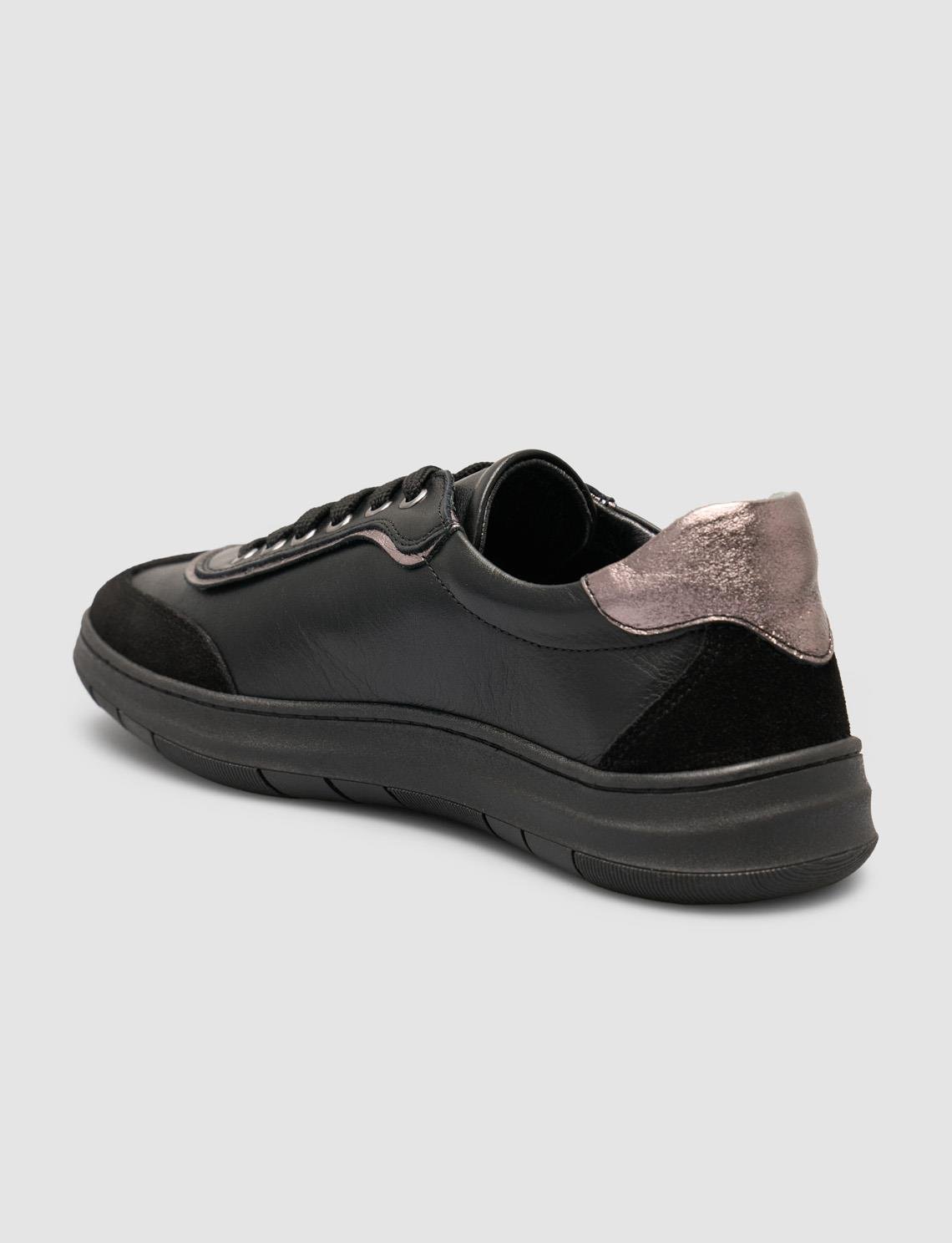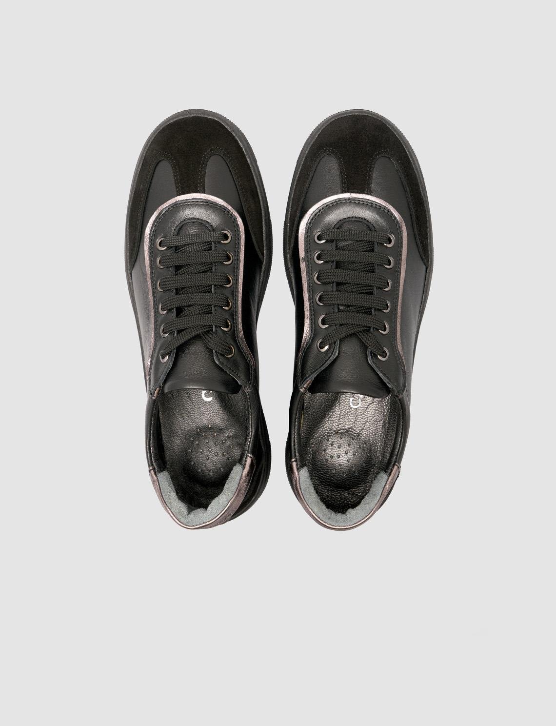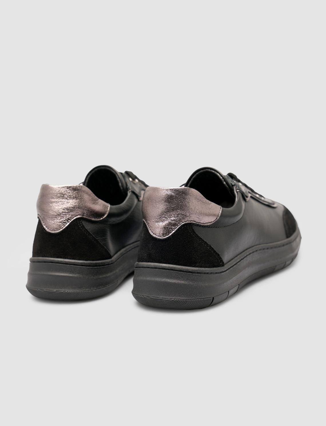 %100 hakiki deri ve süet karışımıyla tasarlanan bu bej comfort ayakkabı, zarif varak detaylarıyla şıklığı ön plana çıkarıyor. Gün boyu rahatlık sunarken, modern çizgisiyle stilinize ışıltılı bir dokunuş katıyor.