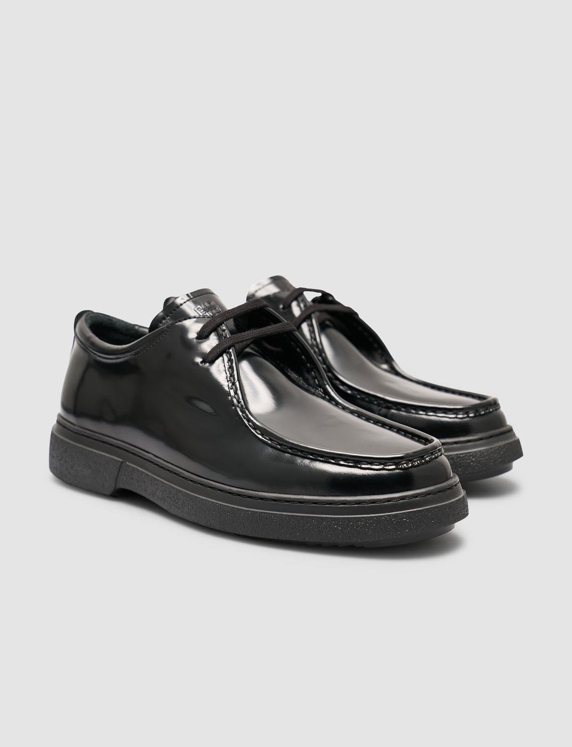 Hakiki dana derisinden üretilen bu siyah Rugan ayakkabı, kış sezonunda konfor ve şıklığı bir arada sunar. Normal kalıplı tasarımı ayağa doğal bir uyum sağlarken, nefes alabilen hakiki keçi deri iç astarı gün boyu rahat bir kullanım sunar. Hafif, esnek ve kaymaz EVA tabanı sayesinde güvenli ve konforlu adımlar sağlar. 3,5 cm taban yüksekliği günlük kullanım için ideal bir denge sunarken bağcıklı yapısı ayakkabının ayağa tam oturmasına yardımcı olur. Lateks yastıklı iç konforu ile Türkiye’de üretilen bu model, günlük ve şehir yaşamına uygun pratik bir kullanım sunar.