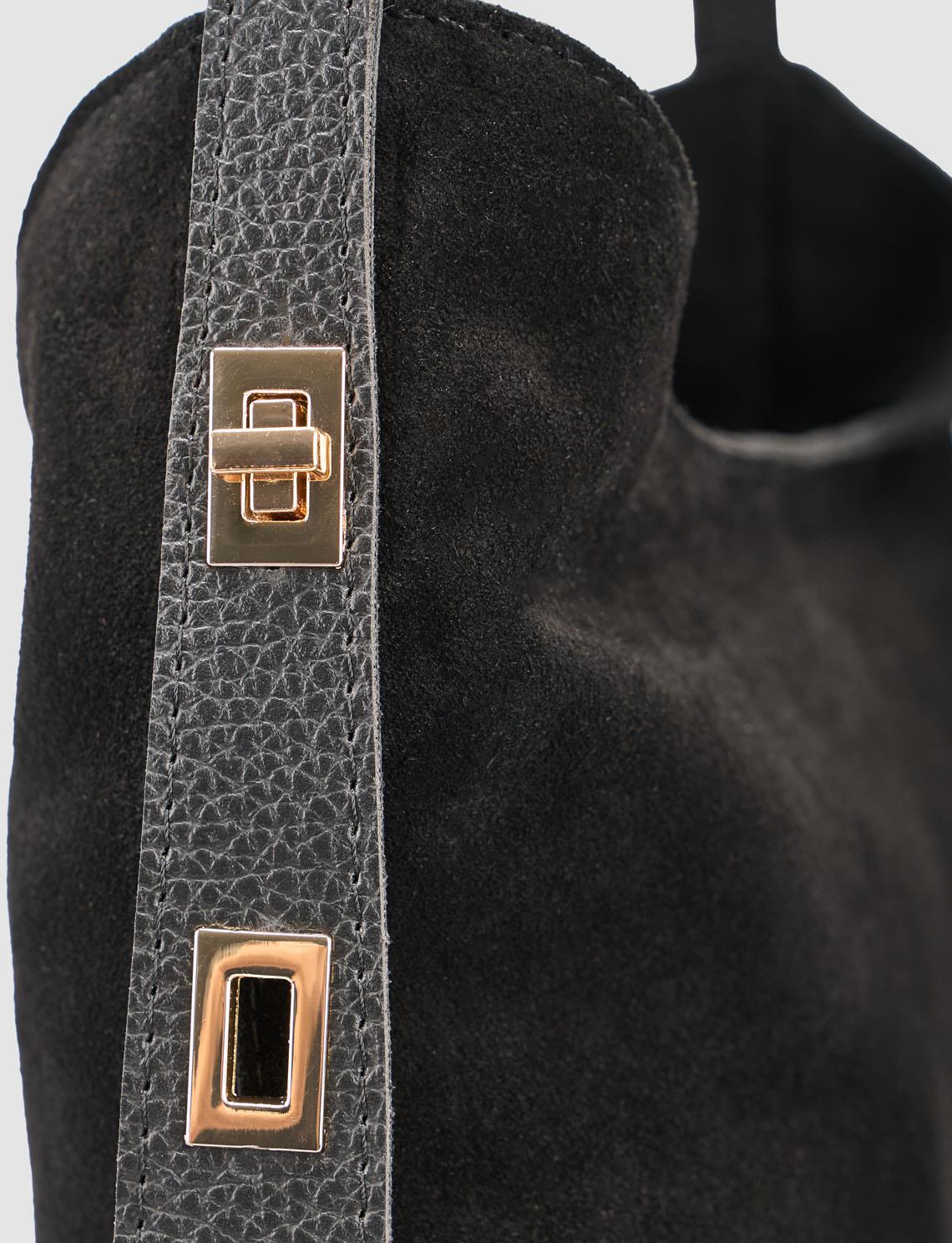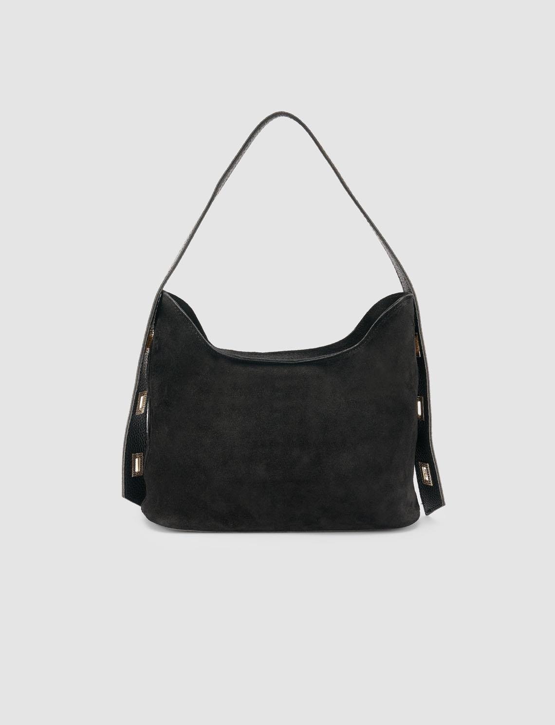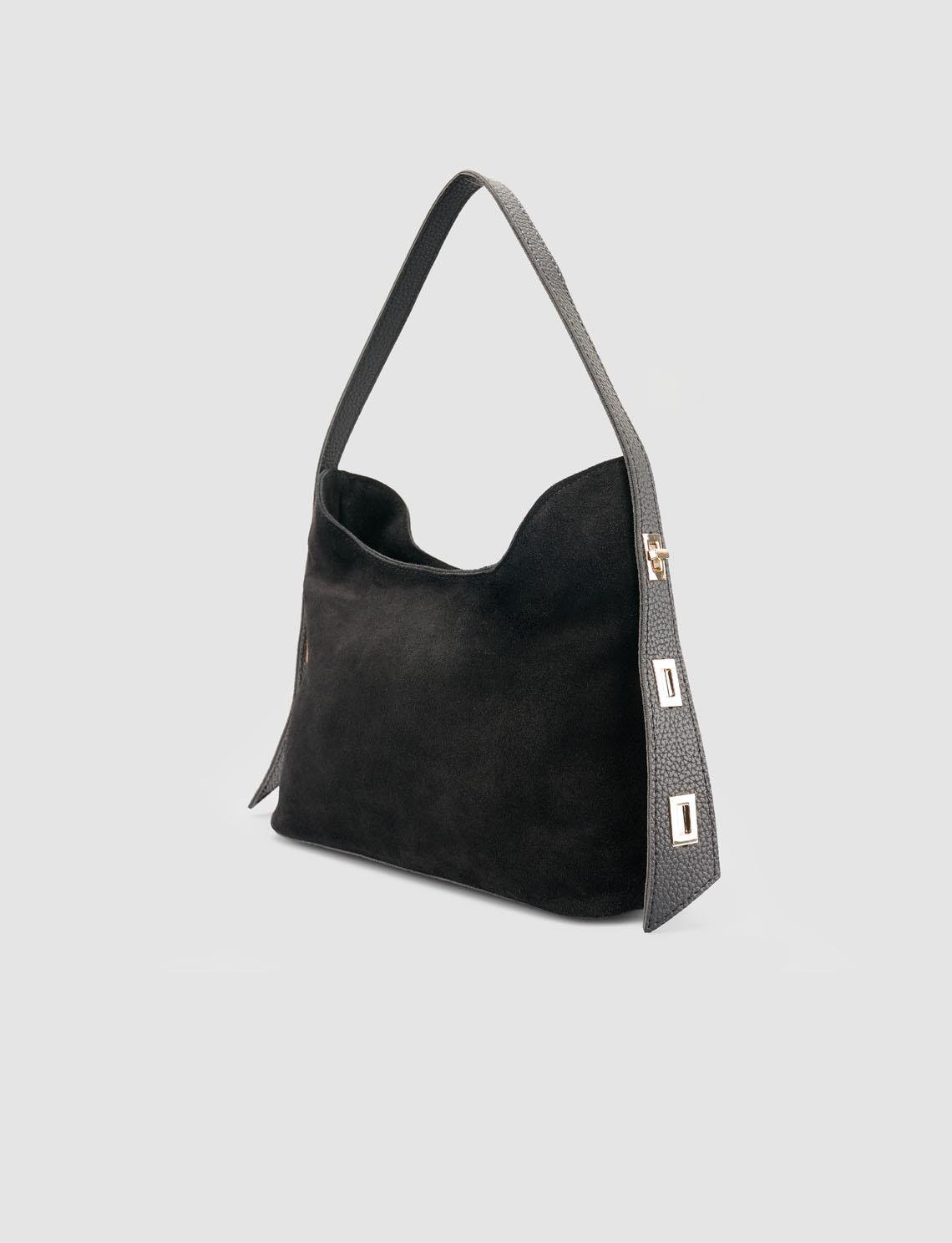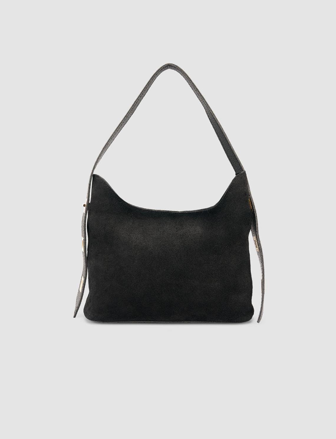 Siyah süet dokusuyla sade ve şık bir görünüme sahip olan bu omuz çantası, yumuşak formu ve geniş iç hacmiyle günlük kullanım için ideal bir alternatiftir. Minimal tasarımı sayesinde farklı tarzlarla kolayca uyum sağlar. Omuz askısı rahat taşıma imkânı sunarken, süetin doğal dokusu çantaya sıcak ve sofistike bir hava katar. Hem şehir yaşamında hem de günlük kombinlerde pratik ve zarif bir kullanım sunan kullanışlı bir modeldir.