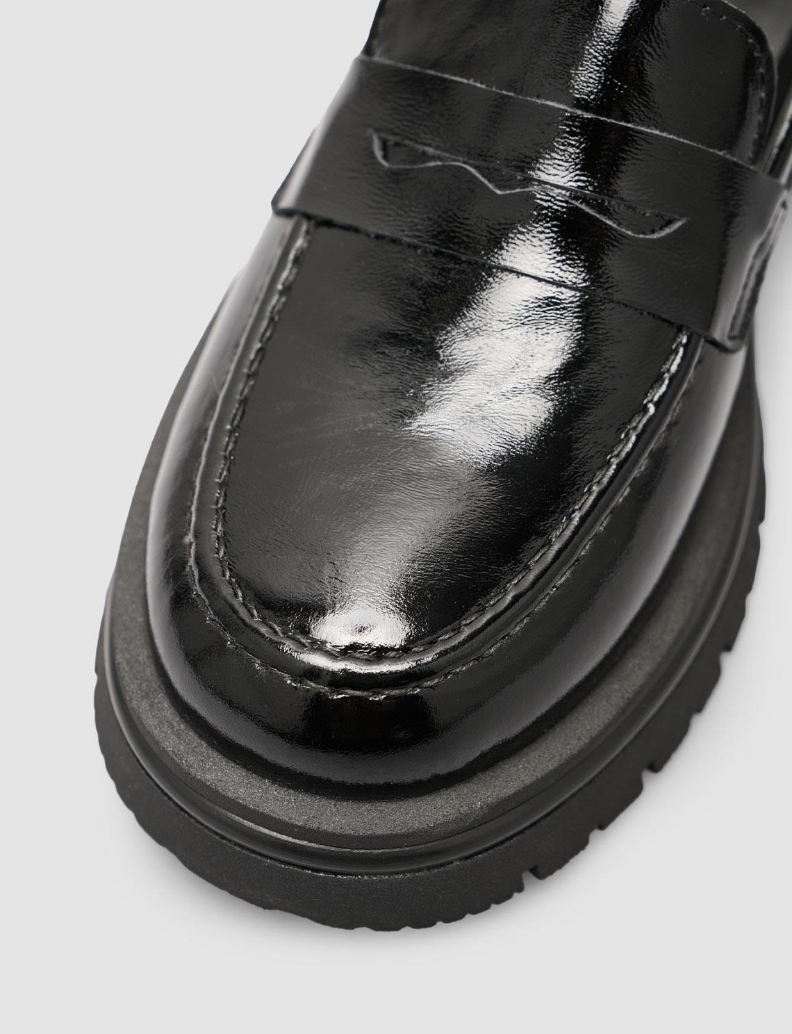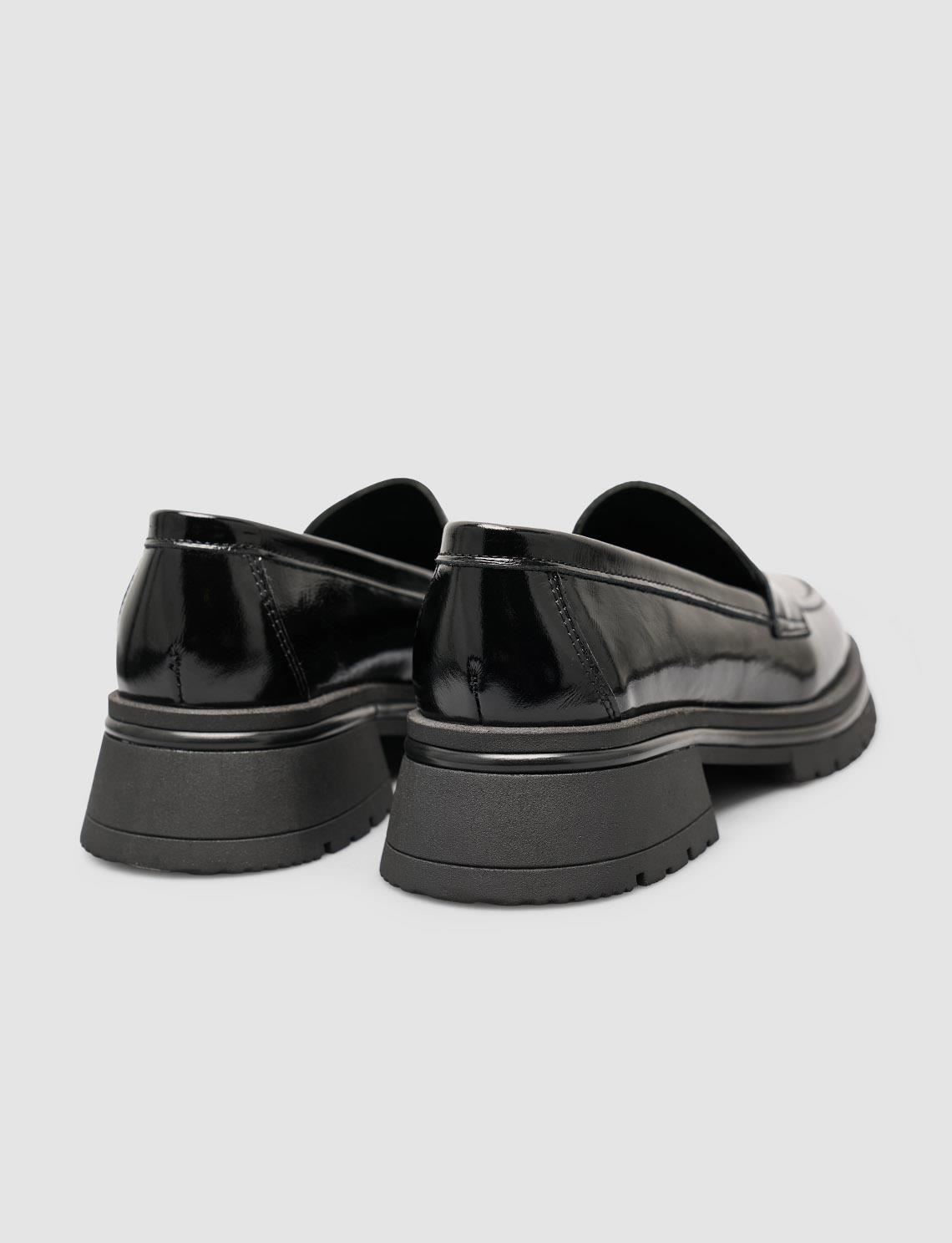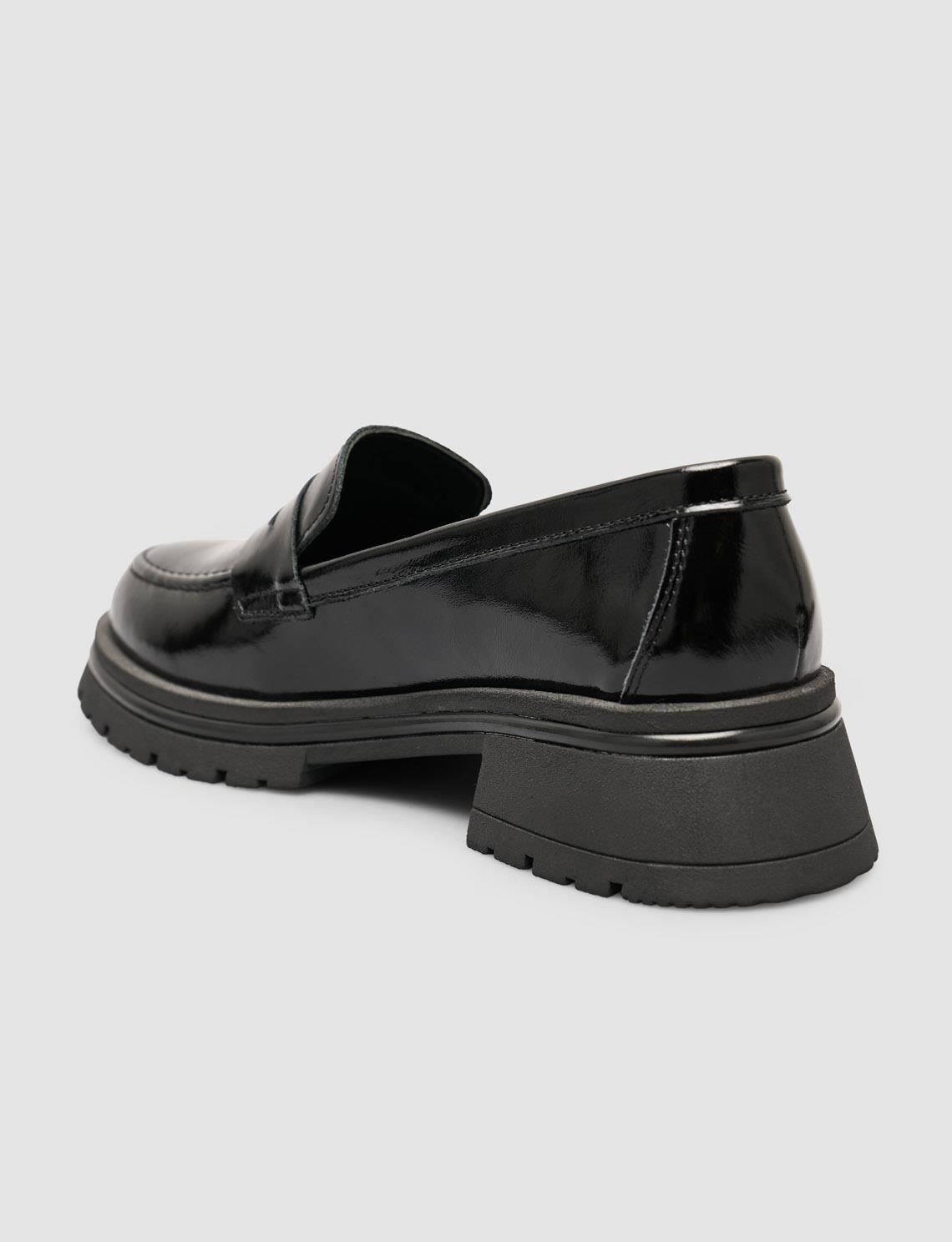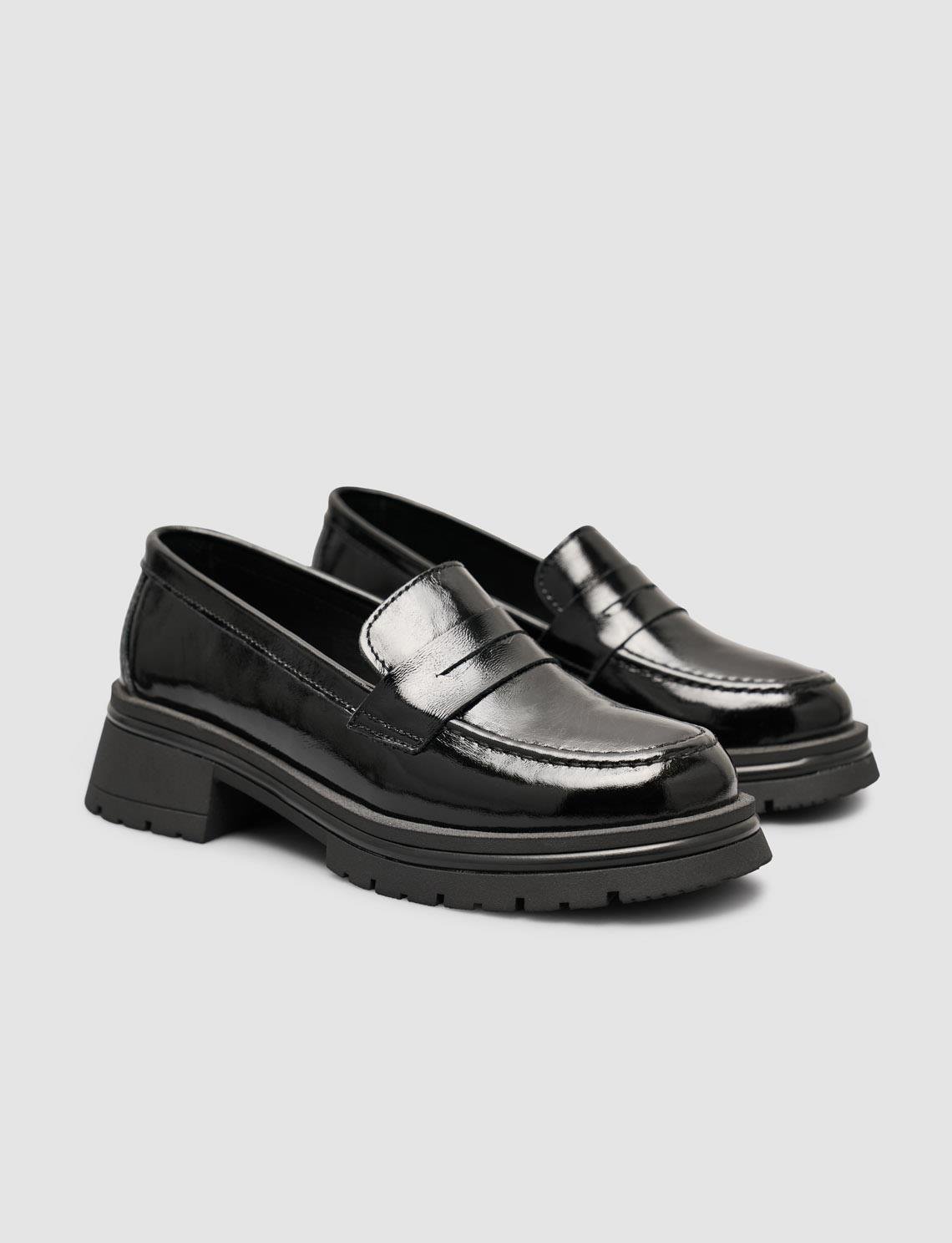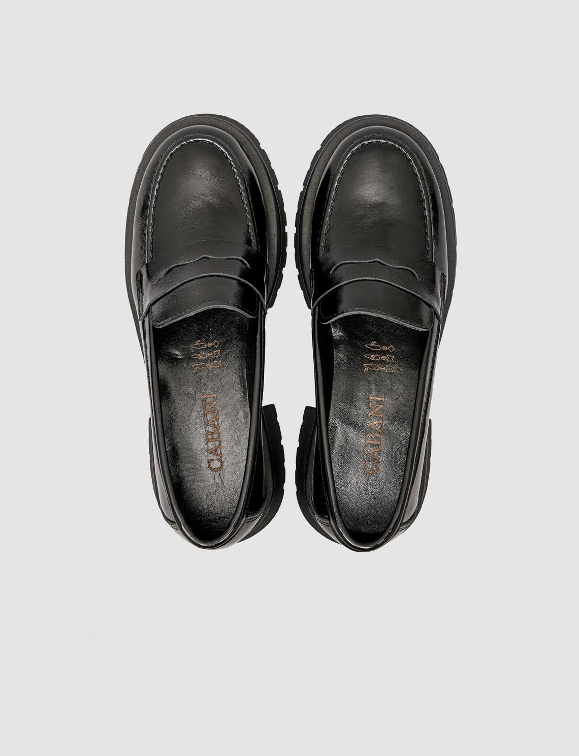 Cabani Hakiki Rugan Deri Kahverengi Kadın Loafer Ayakkabı Parlak rugan derisiyle şıklığı öne çıkaran bu loafer, modern tasarımıyla her kombine sofistike bir dokunuş katar. Hakiki deri yapısı ve yumuşak iç tabanı sayesinde gün boyu konfor sağlar. Hem günlük stilinizde hem de ofis kombinlerinizde zarif bir tamamlayıcı olarak ideal bir seçimdir.