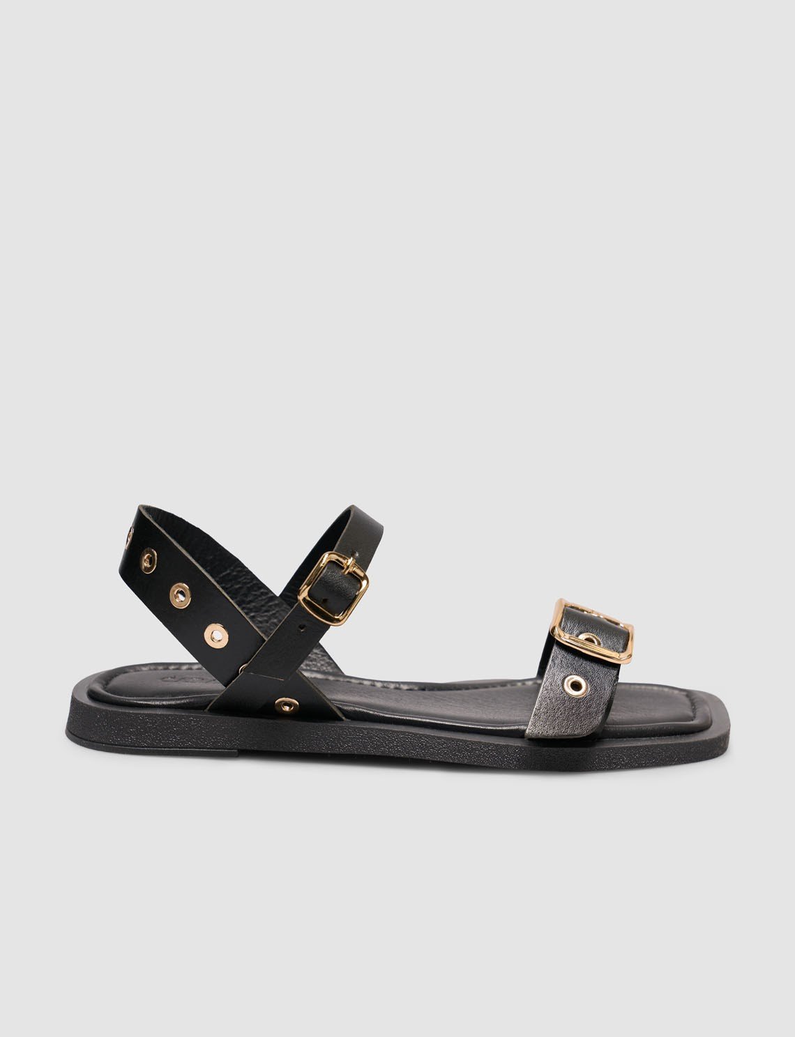 Cabani Siyah Tokalı Hakiki Deri Kadın Sandalet (130689-96)