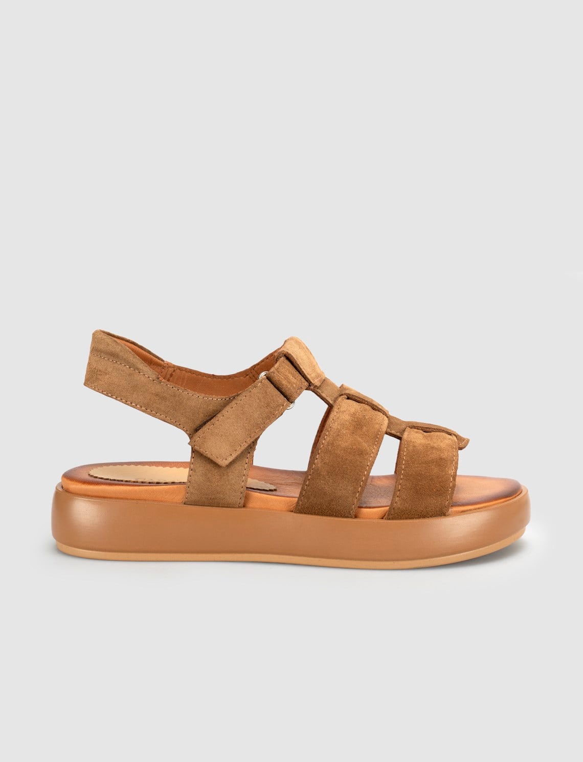 Cabani Kahve Hakiki Deri Kadın Platform Tabanlı Gladyatör Sandalet