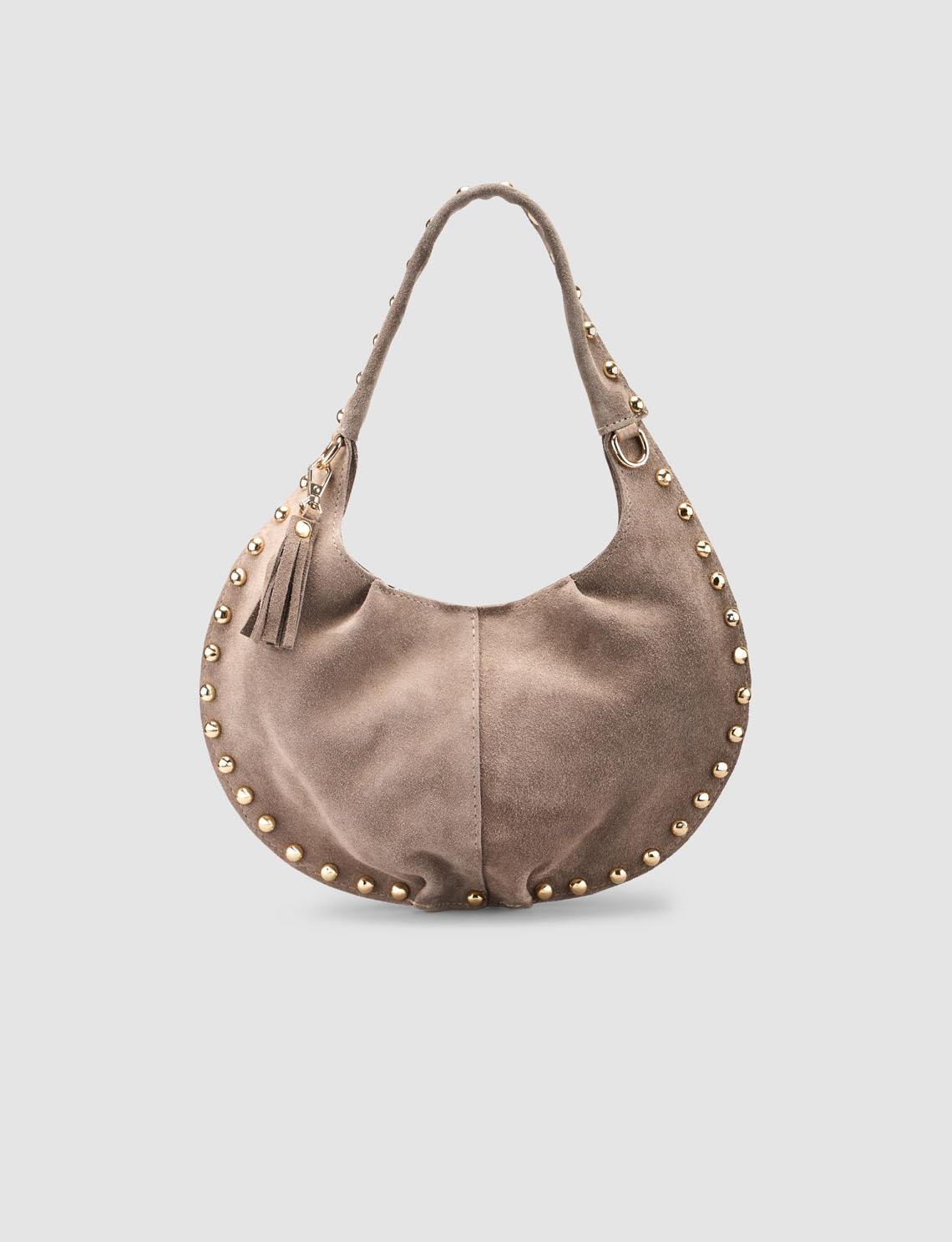 Genuine Suede Studded Mink Half-Moon Women's Shoulder Bag (130030-2501)