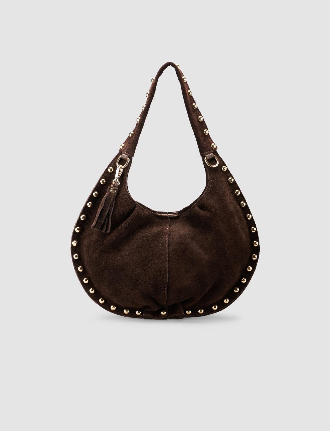 Genuine Suede Studded Brown Half-Moon Women's Shoulder Bag (130030-1113)