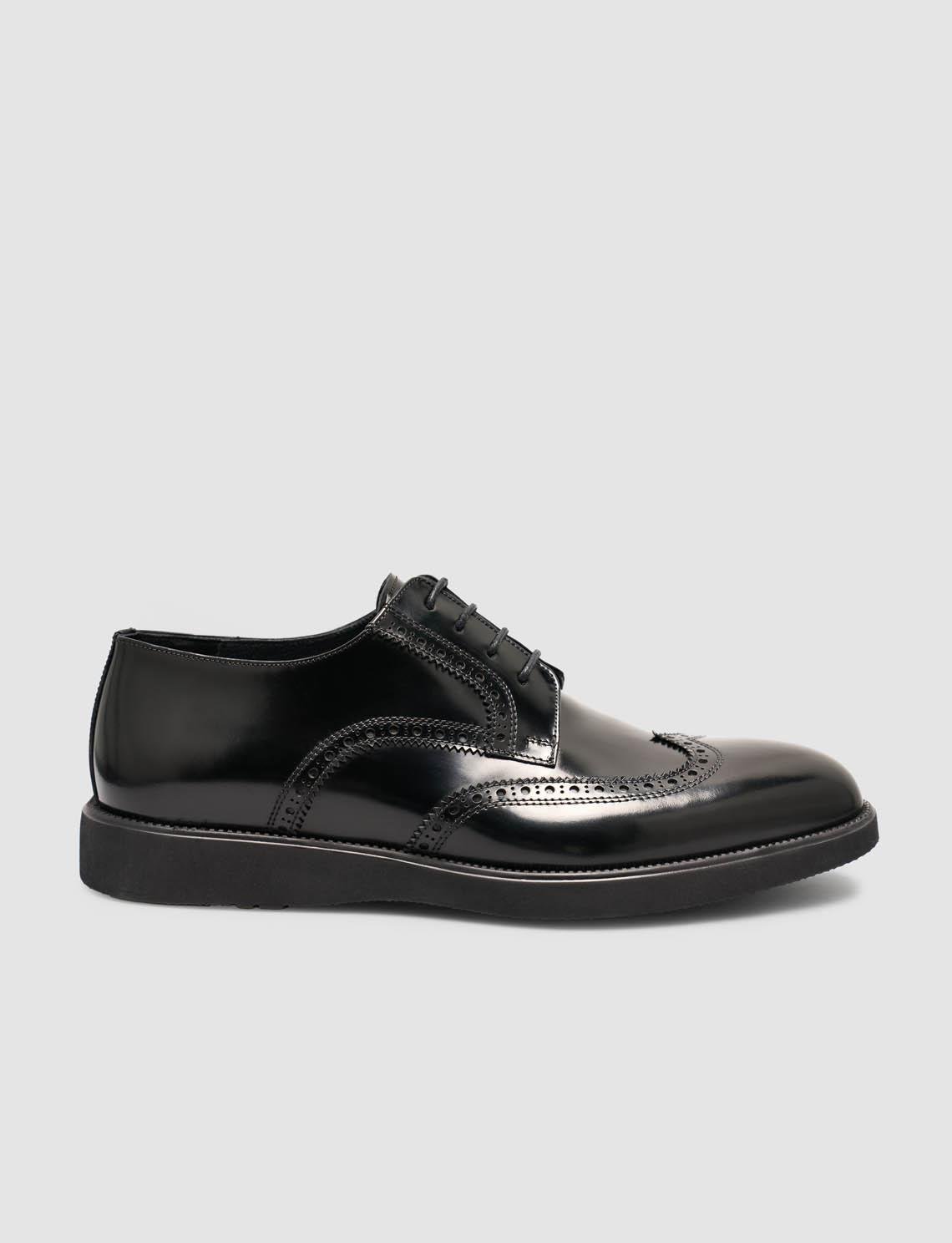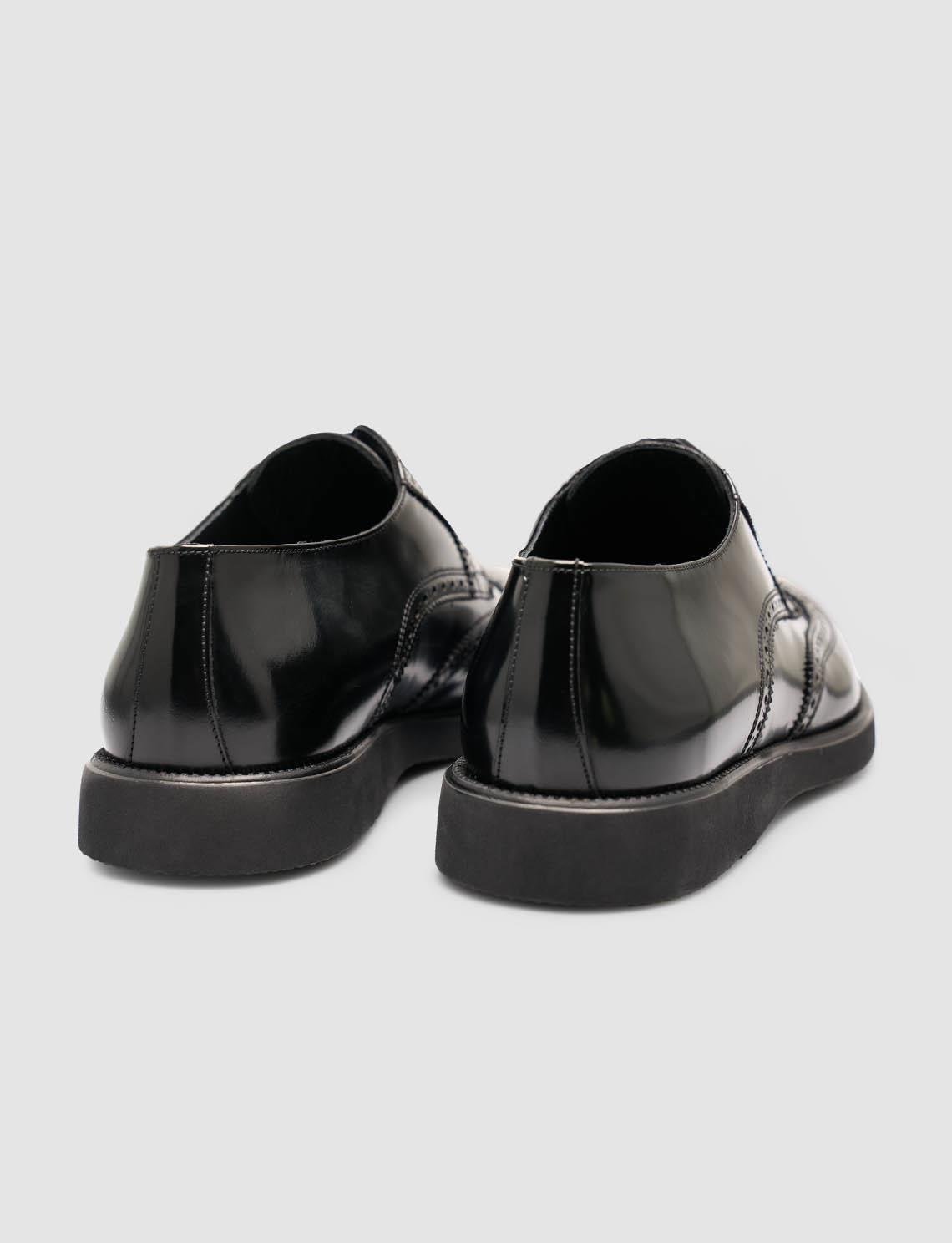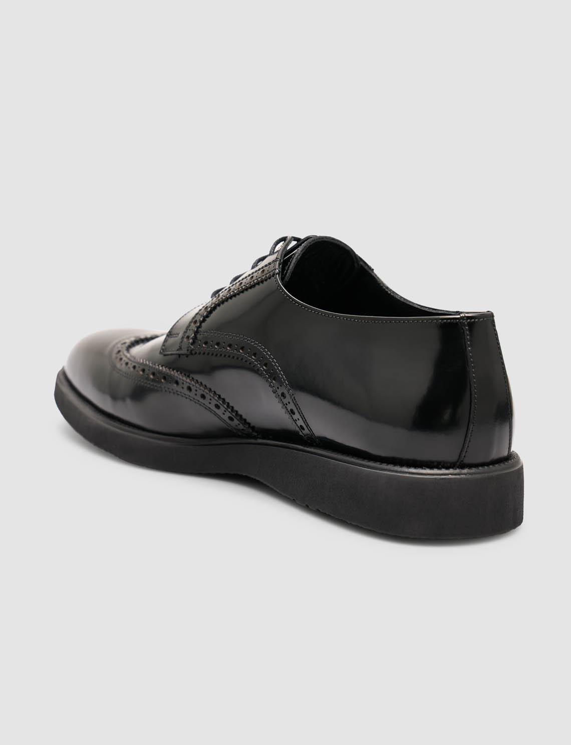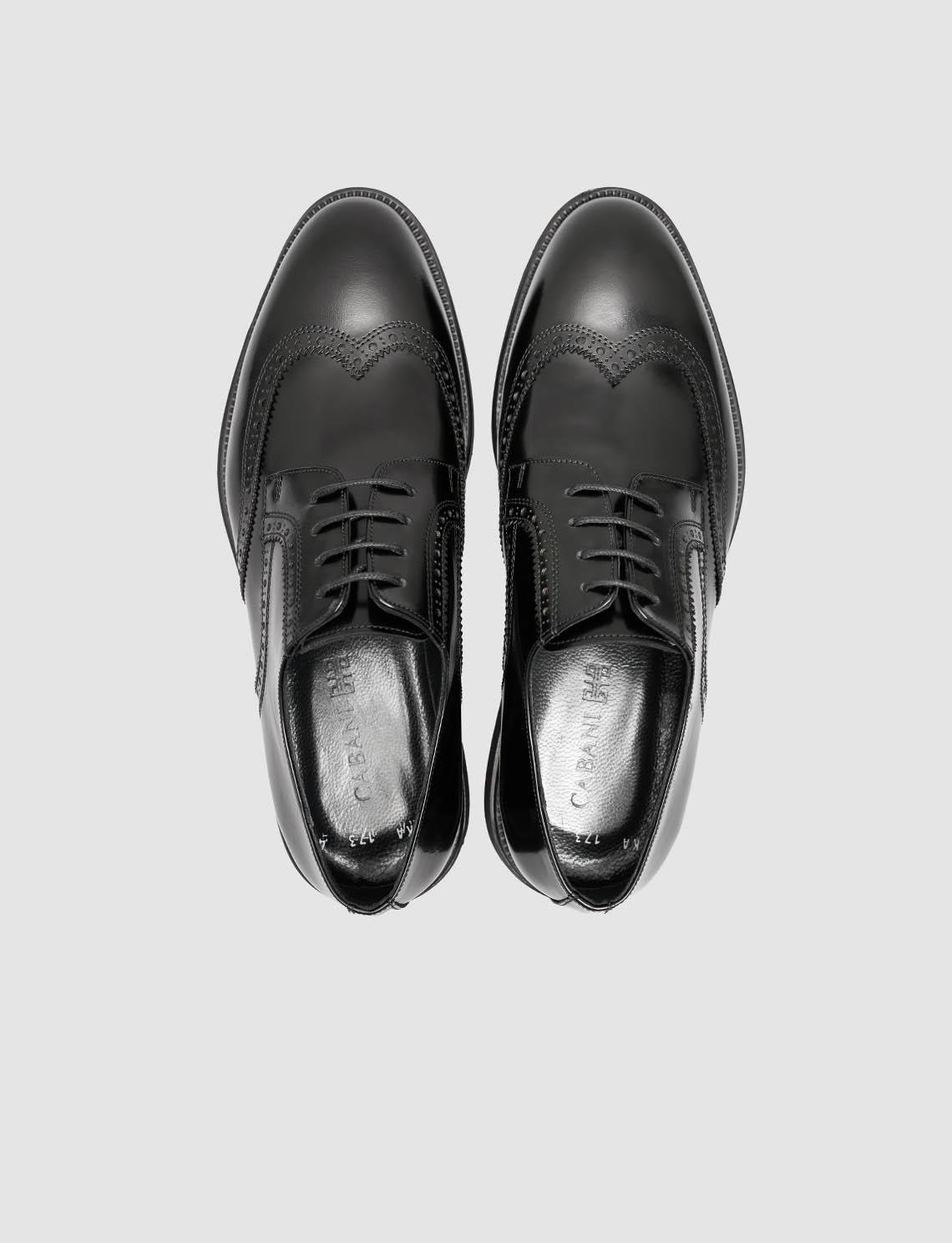 Zarif brogue detaylarıyla klasik şıklığı modern konforla birleştiren hakiki dana deri siyah klasik ayakkabı, nefes alabilen hakiki keçi derisi iç astarı sayesinde gün boyu ferahlık sunar. Hafif, esnek ve kaymaz EVA tabanı ile 3 cm taban yüksekliği, uzun süreli kullanımlarda yumuşak adım hissi sağlar. Normal kalıp yapısı ve bağcıklı tasarımıyla ayağa kusursuz uyum sağlayan model, mevsimlik kullanıma uygun olup hem iş stilinde hem günlük kombinlerde şık bir duruş kazandırır.