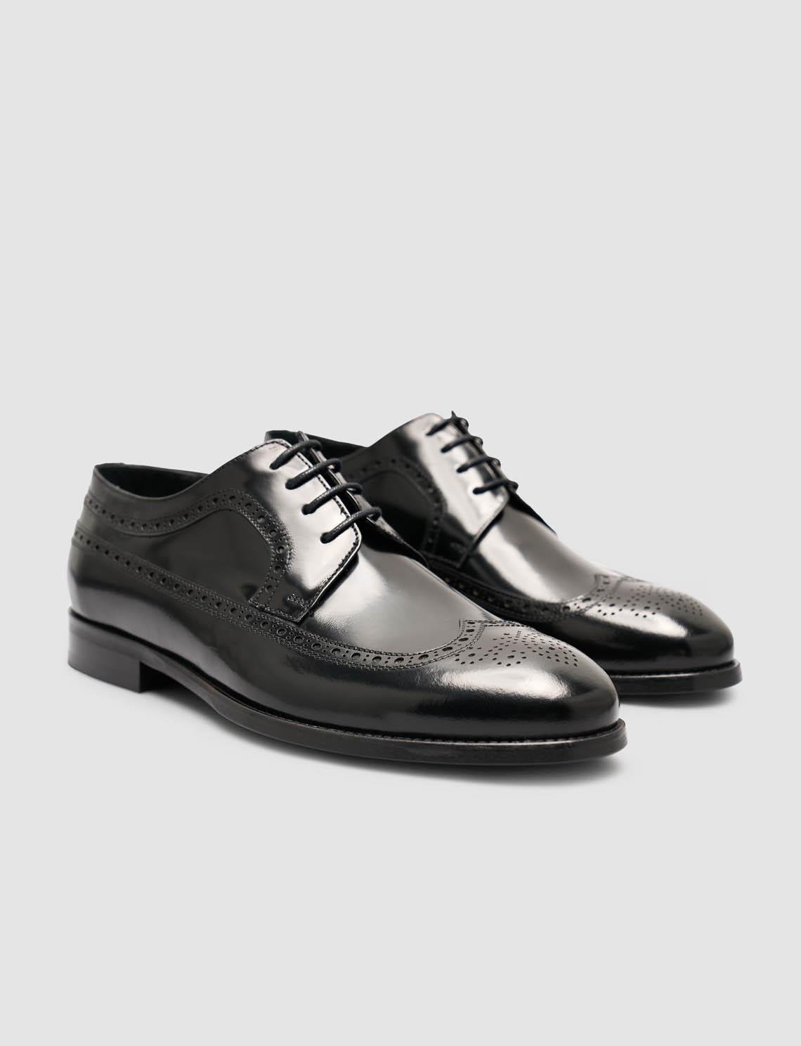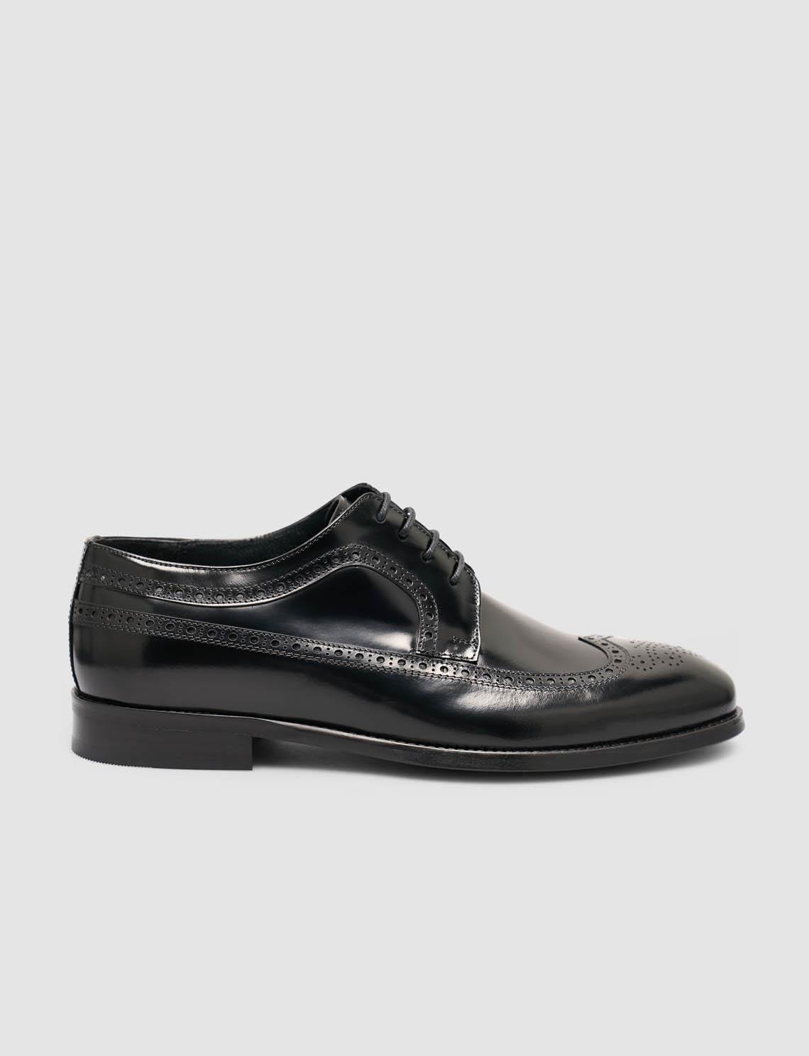 Şıklığı ve konforu bir arada sunan hakiki dana deri siyah brogue Oxford ayakkabı, nefes alabilen hakiki keçi derisi iç astarı sayesinde gün boyu ferahlık sağlar. Hafif ve esnek Microlight Neolit tabanı ile her adımda yumuşak yürüyüş deneyimi sunan model, 2,5 cm topuk yüksekliği ve zarif perforaj detaylarıyla hem iş hayatında hem özel davetlerde kusursuz bir görünüm yaratır. Normal kalıp yapısıyla ayağa kolay uyum sağlayan bağcıklı tasarım, dört mevsim kullanıma uygun şık bir seçenektir.