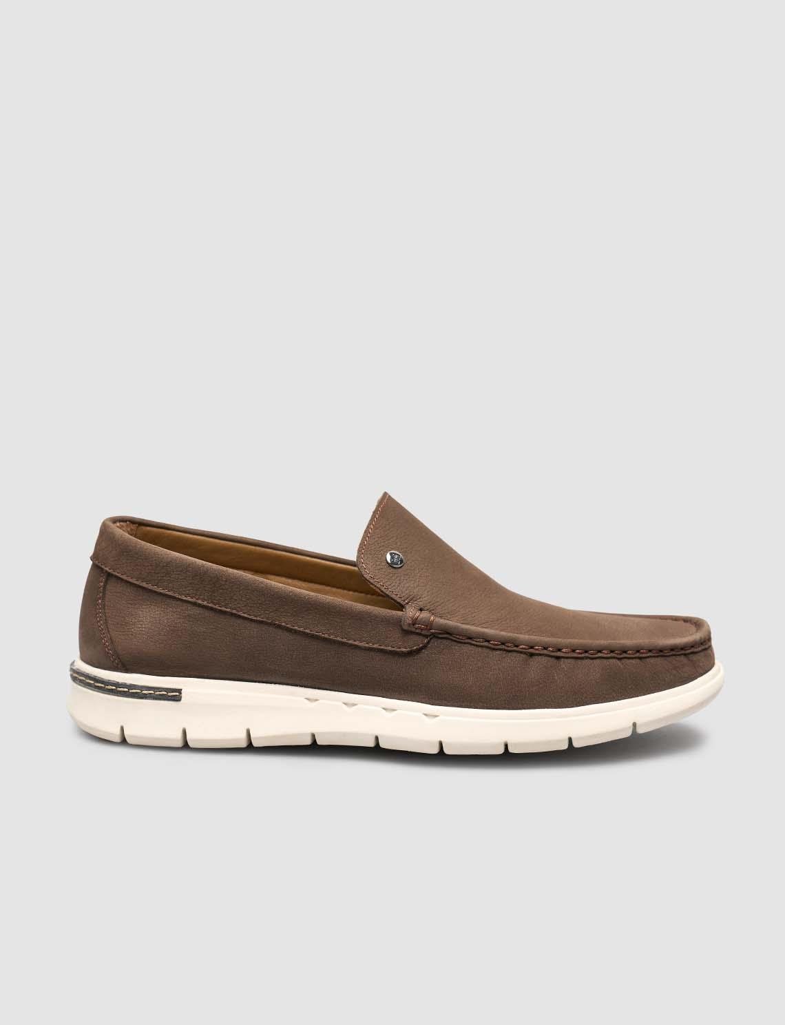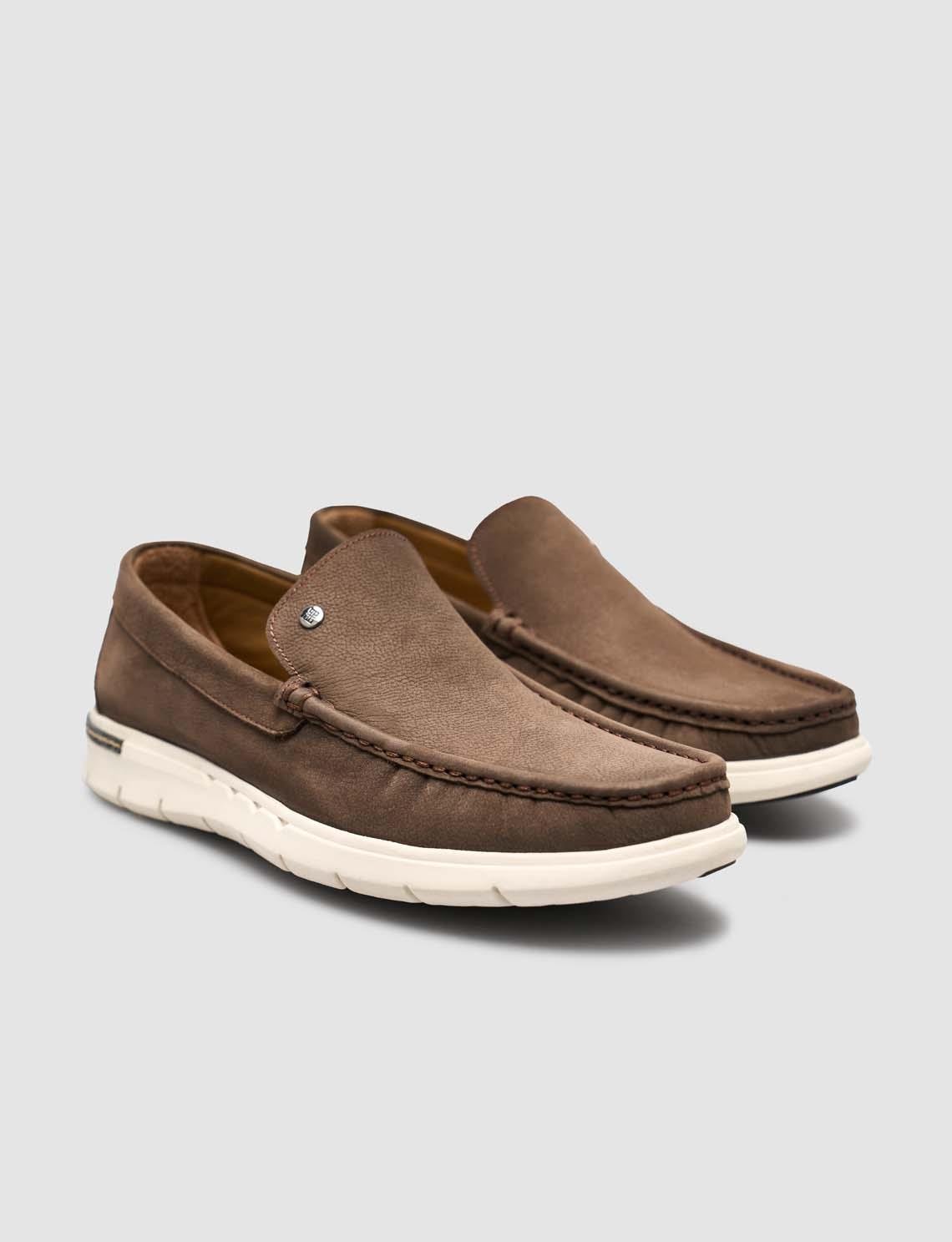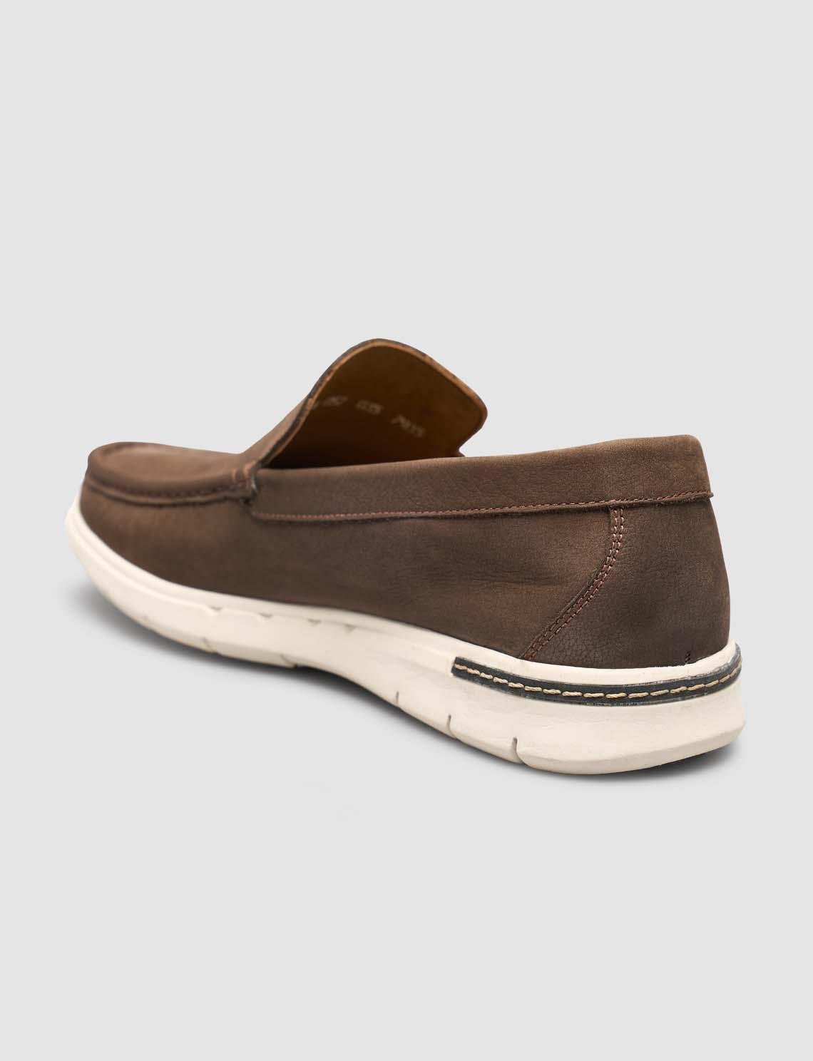 Yumuşak dokulu hakiki dana derisiyle üretilen bu kahverengi günlük loafer, modern beyaz tabanı ile hem sportif hem şık bir görünüm sunar. Nefes alabilen iç yapısı ve esnek tabanı sayesinde gün boyu konfor sağlayan model, hafifliğiyle uzun süreli kullanımlarda yormaz. Günlük şehir yaşamına, seyahate ve casual kombinlere mükemmel uyum sağlayan bu rahat loafer, mevsimlik yapısıyla her gün kullanıma uygundur.