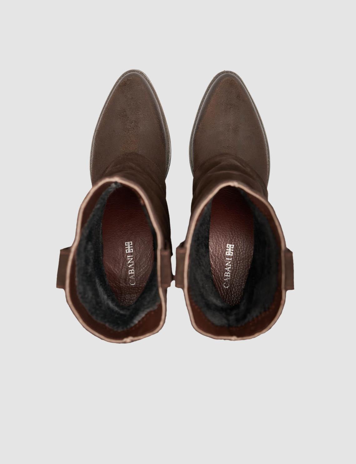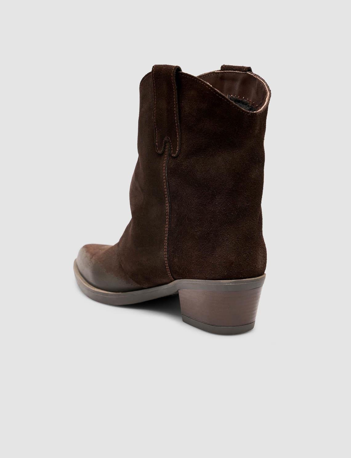 Hakiki Süet Deri Kahverengi Kadın Western Bot (129696-14029)