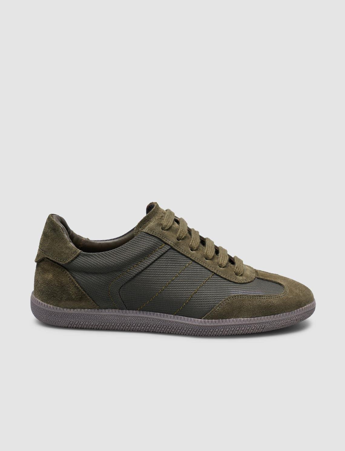 Hakiki Süet Haki Deri Bağıcıklı Kadın Sneaker (129774-7196)