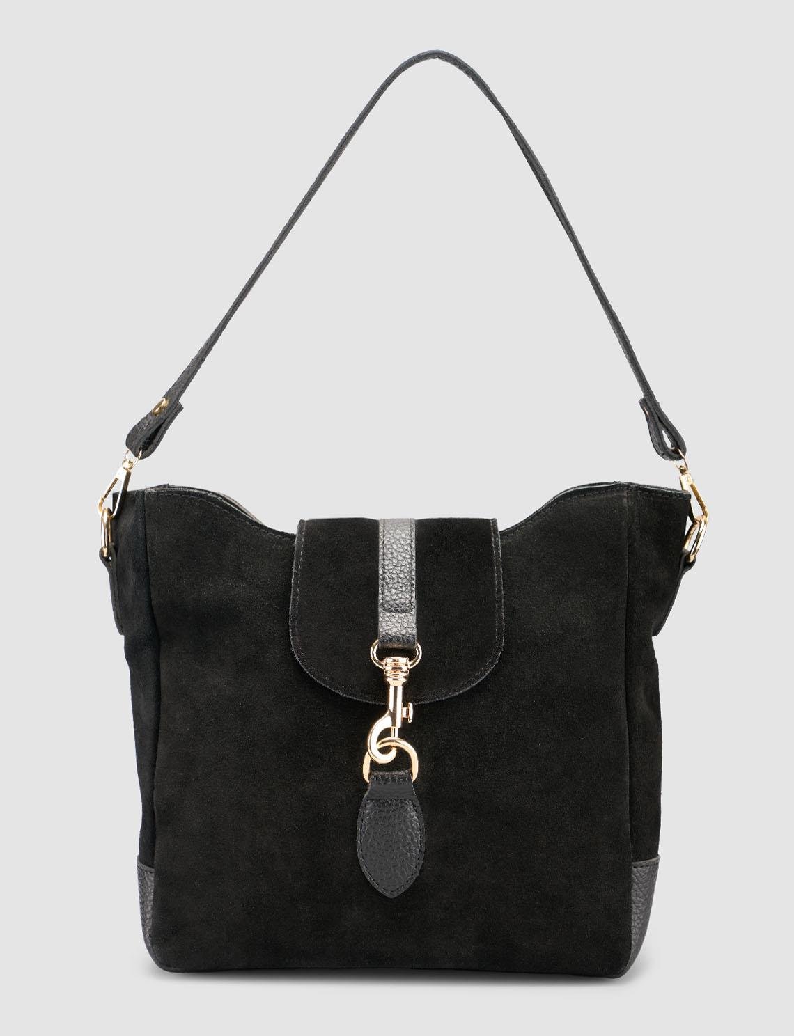 Hakiki Süet Siyah Tokalı Kadın Omuz Çantası (127097-1114)