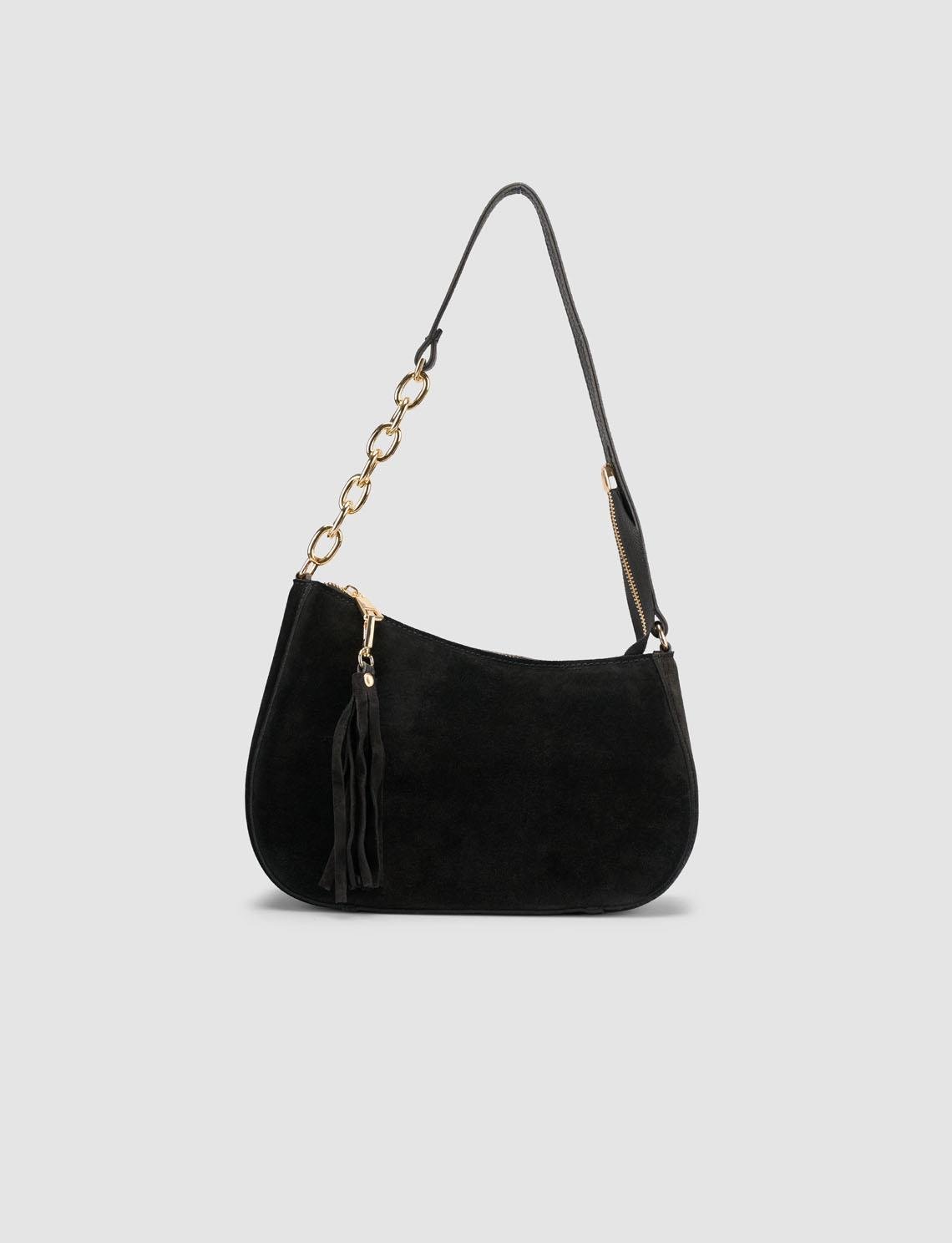 Hakiki Süet Zincir Detaylı Siyah Kadın Omuz Çantası (130031-1114)