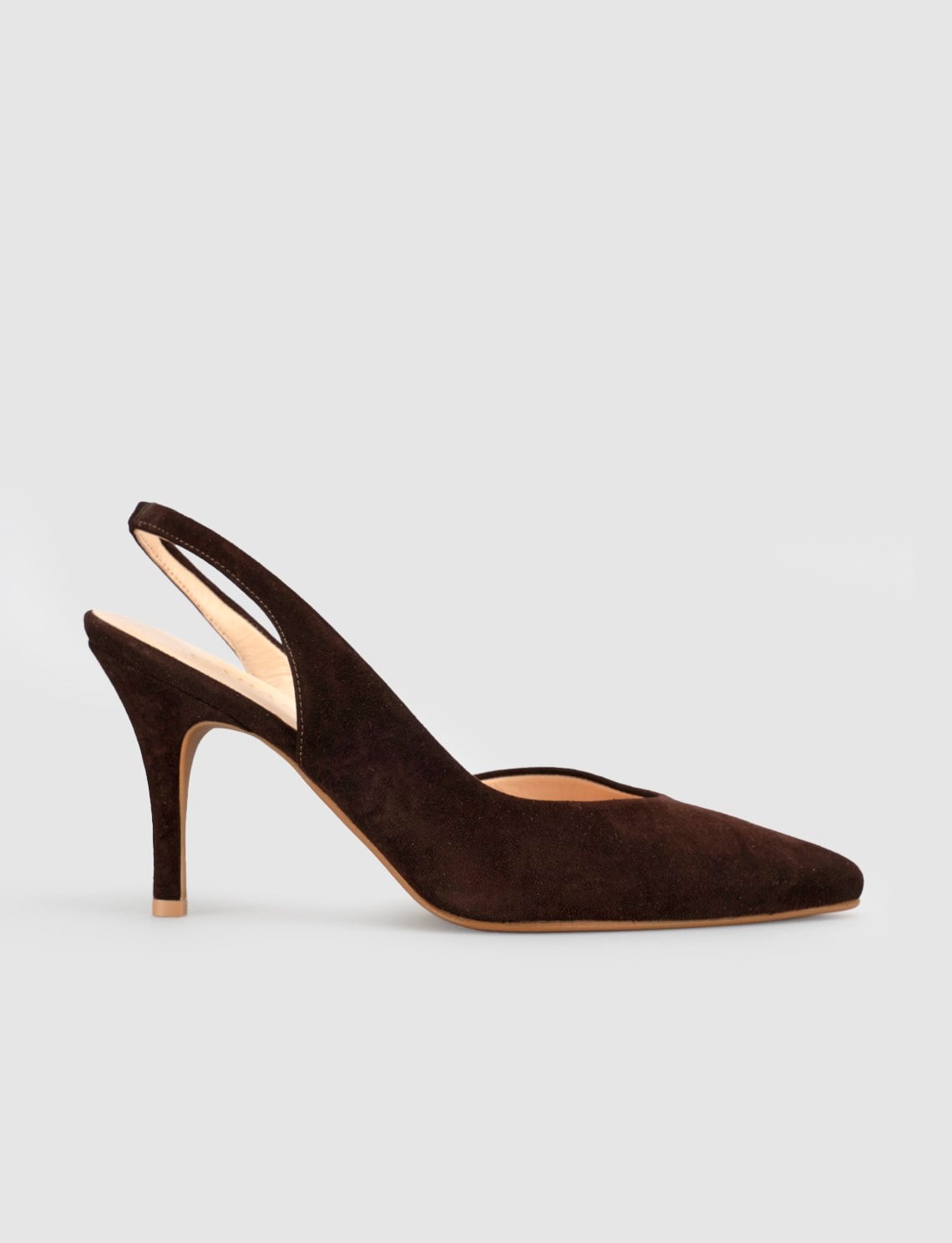 Kahverengi Süet Hakiki Deri Slingback Stiletto Kadın Ayakkabı (130299-107)