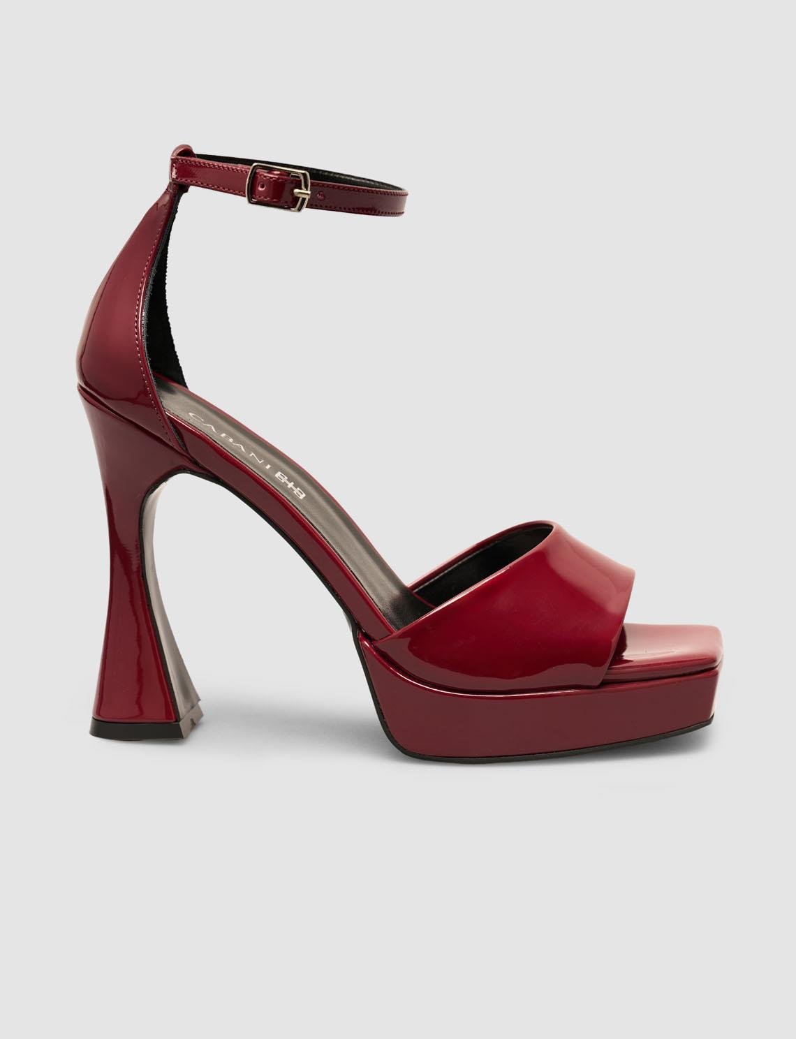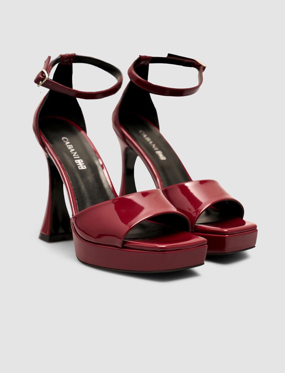 Platform Topuklu Bordo Bantlı Kadın Ayakkabı (129801-14119)