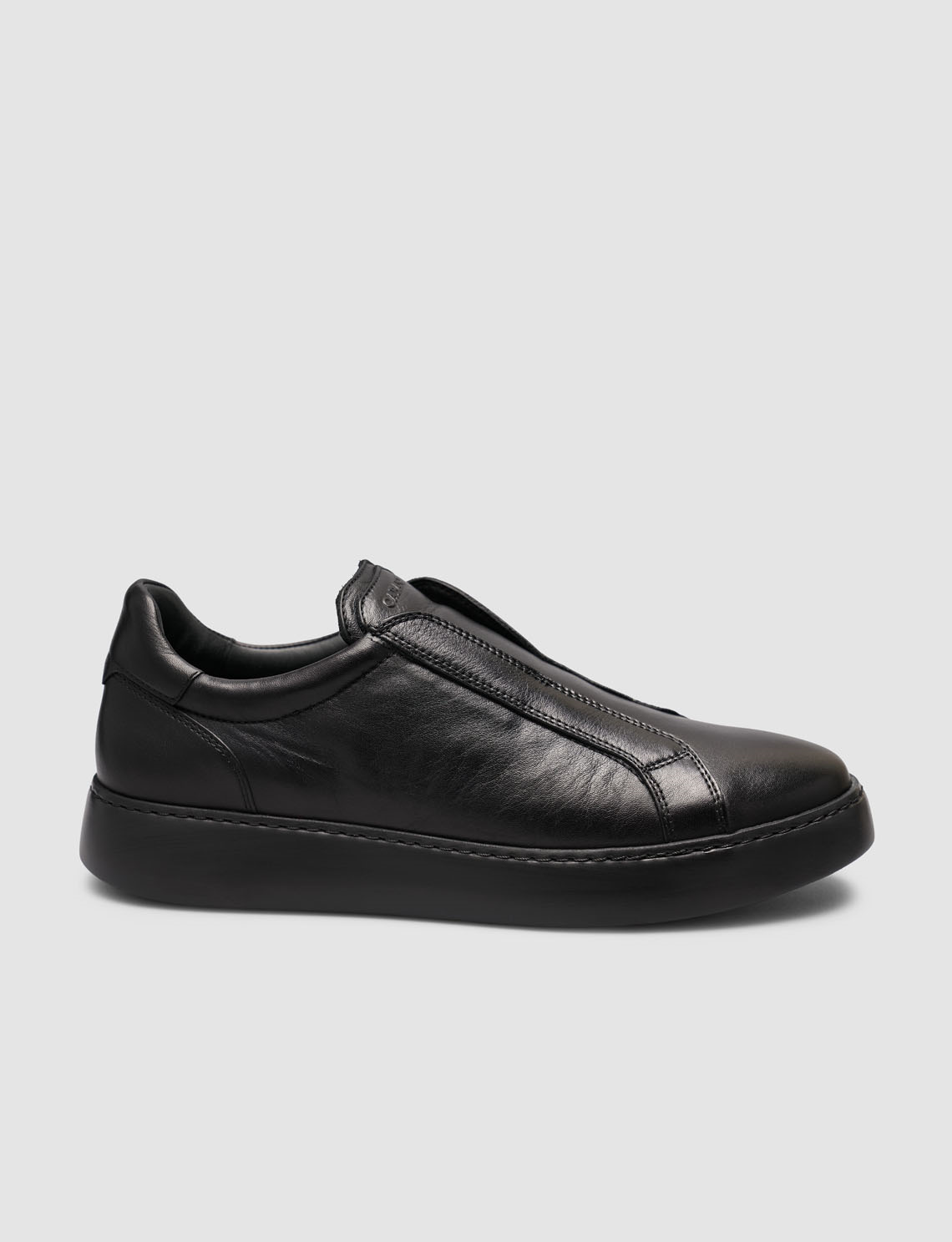-Siyah hakiki dana deriden üretilen slip-on sneaker, bağcıksız yapısıyla kolay giyim sunar.